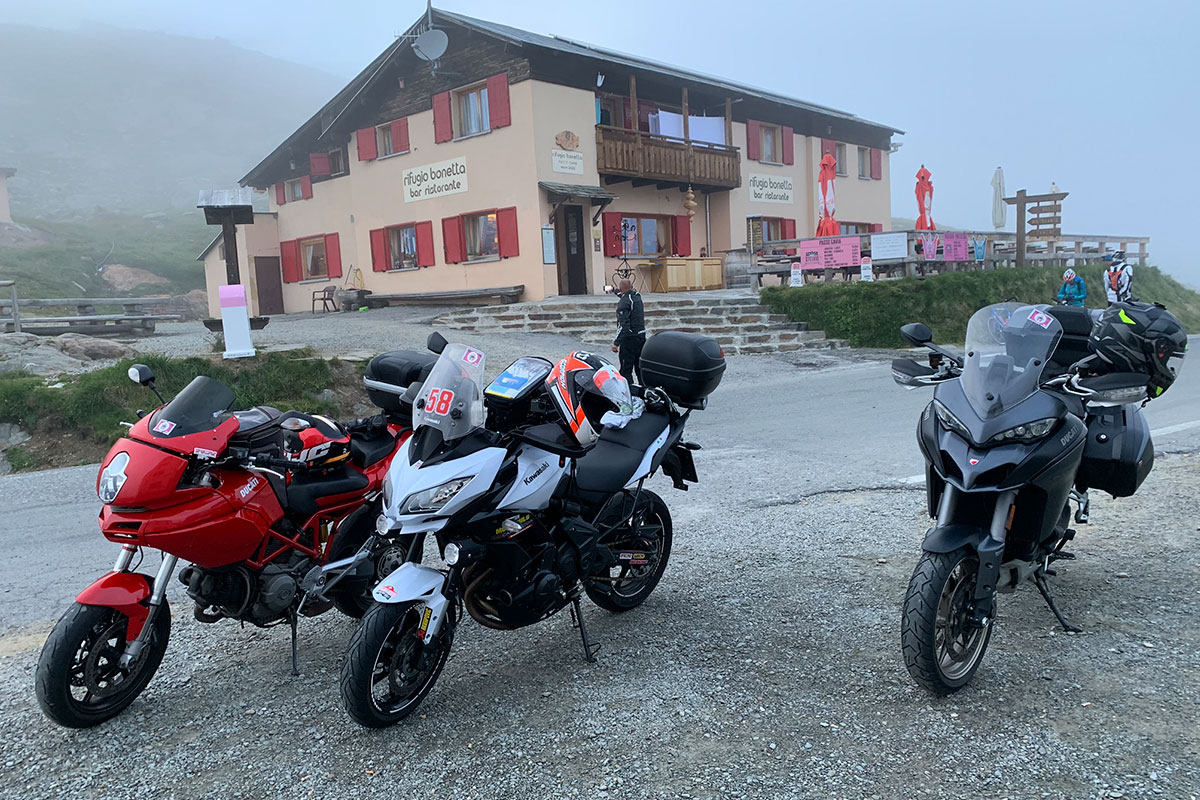 Tre ragazzi , tre piloti su motori , due Ducati Grandi e uno piccolo Kawasaki percosero oltre duemila chilometri in tre giorni .