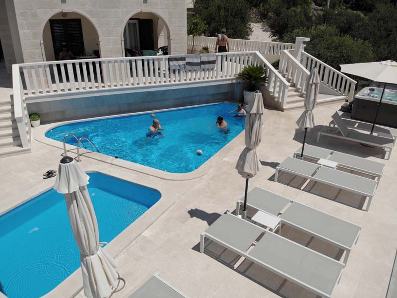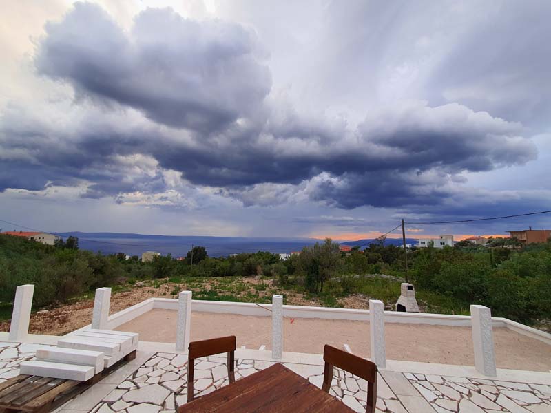 Do Makarske smo išli prateći jadransku obalu, tako da smo uz kratka zaustavljanja na magistrali, stali još u Vodicama i Trogiru. Pred samim ulaskom u Makarsku dočekuje nas lošije vrijeme, poneka kapljica kiše i jak vjetar koji doslovno pomiče motor metar u stranu. Sva sreća to je bilo svega nekoliko kilometara od apartmana pa nismo trebali stajati već smo polako, ali sigurno stigli u apartman. Apartmani su Hrvojevi (Villa Hills, Instagram, Booking – „bacite oko“, preporuka za odmoriti dušu i tijelo) te se tom prilikom u ime nas trojice želim zahvaliti za smještaj i gostoprimstvu, hvala još jednom na svemu! Loše vrijeme nije nas spriječilo da za večeru „bacimo“ roštilj i opustimo se u jacuzziju te tako opušteni i siti završimo drugi dan našeg putovanja.