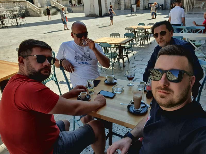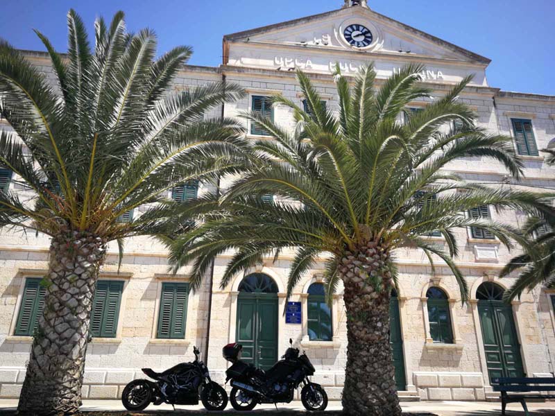 Utorak, 23. lipnja 2020. godine, treći dan. Nimalo ugodno jutro, bura puše kao i prethodni dan i večer. Spremamo se i nadamo se da je samo u Makarskoj takvo vrijeme. Gledamo prognozu i ona je na našoj strani, iako smo morali sakrivati motore u zavjetrinu dok smo ispijali jutarnju kavu u obližnjem kafiću. Naše je današnje odredište Dubrovnik do kojeg ćemo doći preko lijepe Korčule i poluotoka Pelješca. Po buri krećemo u Split na trajekt i ona nas prati sve do samog ulaska u Split, a u Splitu vrijeme ne može biti ljepše, kao da smo u drugoj državi, a ne samo 60-tak kilometara od onog ružnog vremena u Makarskoj. Dolazimo do trajektne luke gdje uzimamo karte do mjesta Vela Luka, Korčula (cijena karte za motor i jednu osobu iznosi 173 kn).