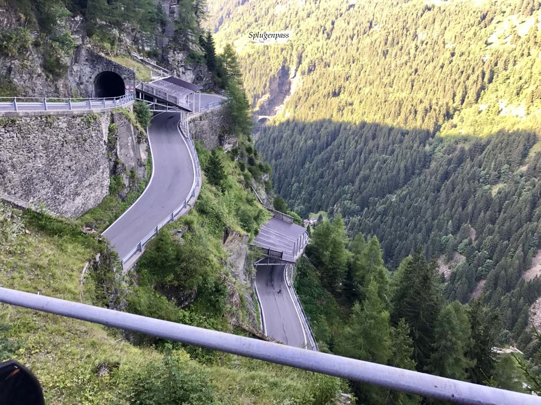 Na vrhu, ugodna atmosfera, opet uz jezero. Spuštam se prema Splugenu, mjestu iz kojeg kreće uspon na Splugenpass. Tu kroz šumu i oštre zavoje izlazim na ravniji i pregledniji dio, prije nego krenu serpentine, koje su tako pravilno postavljene da takvo nešto nisam nigdje vidio. Kao u nekom moto trening kampu gdje žele da naučite kako prolaziti serpentinama i kao da vam netko stalno govori: “ponovi”!