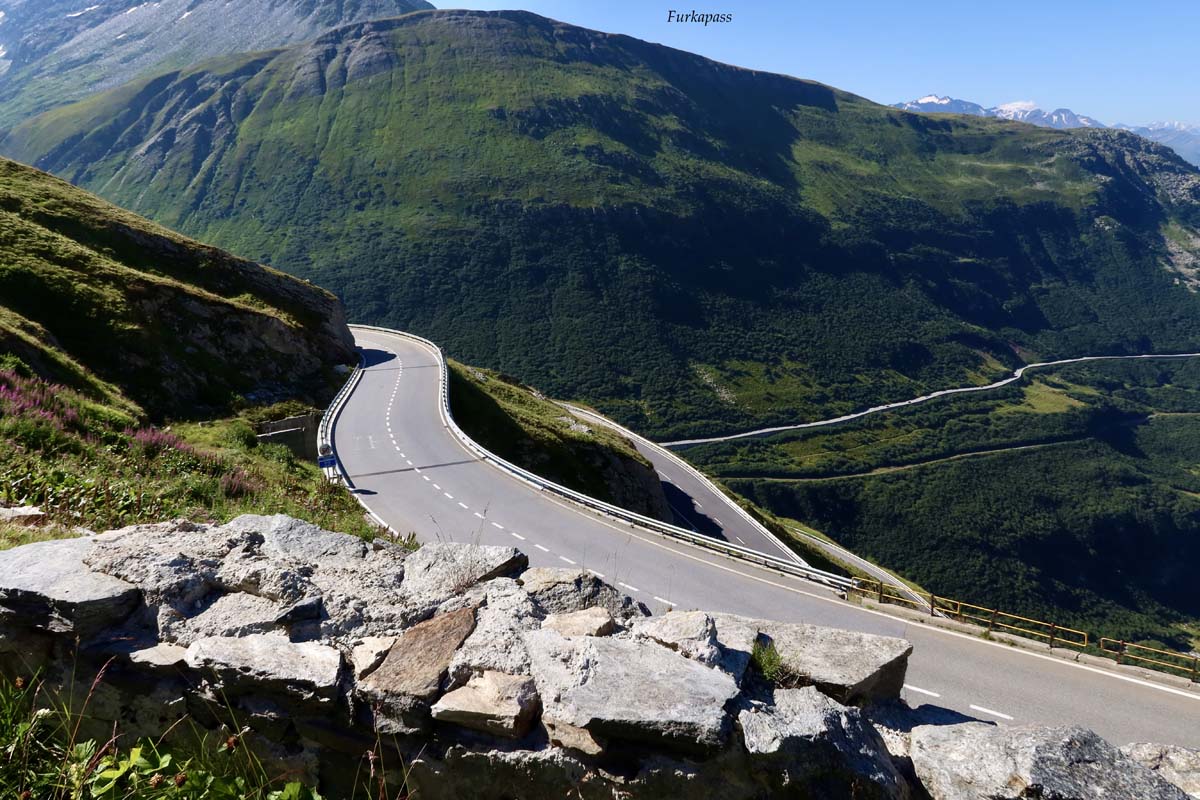 Ajmo na Furkapass! Kreće kao vijugava cesta i odjednom počinju serpentine maskirane u zelenilu, nakon kojih se cesta počinje penjati s većim razmacima do sljedeće serpentine. Na par mjesta pri izlasku iz zavoja izgleda kao da vozim u nebo. Na ovoj dionici je sniman James Bond “Goldfinger” , a kad nema prometa doista izgleda kao da se vozite u nekom filmu.