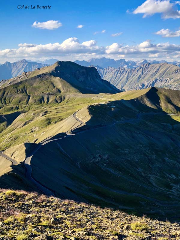 S ovim prijevojem već smo izašli iz Savoije, i sada smo u Alpama Provanse koje se vežu na Azurnu obalu tako da se osjeti toplija klima i mediteranski ugođaj. Bez obzira na blizinu obale, ovdje se nalazi najviši prijevoj Col de Bonette s 2.802 metara nadmorske visine, a prema kojem krećemo zavojitom cestom u dolini. Ta cesta je na nekim mjestima uklesana u stijene i svako toliko začinjena kamenim tunelom u stilu Rute Napoleona. Slijedi Col de Vars preko kojeg je sjajna vožnja s malo lakšim zavojima, a to je i pravi uvod za Bonette na koji se kreće iz mjesta Jausiers.