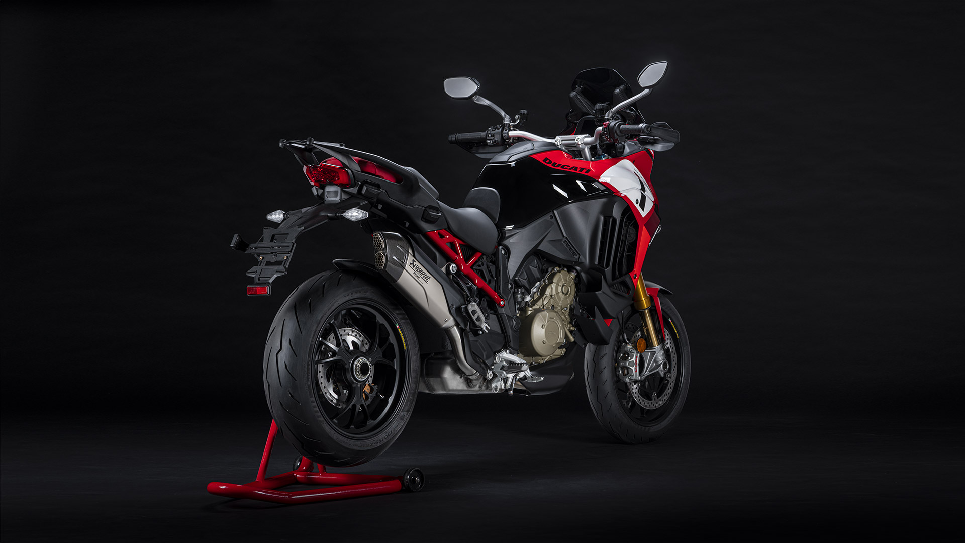 Multistrada V4 Pikes Peak je razvijena kako bi sportske kvalitete Multistrade V4 S dovela do ekstrema: namjenski položaj za vožnju, 17-inčni kotači sa sportskim gumama, jednostrana klackalica, Öhlins ovjes i novi Race Riding Mode.