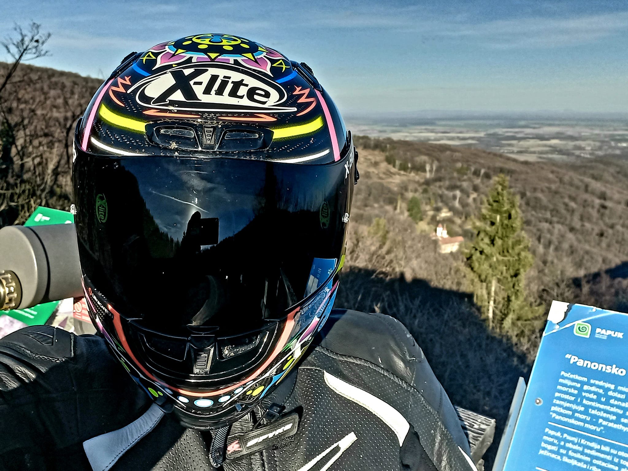 Tu i tamo podignem vizir kako bih obrisao po koju kapljicu sa svog smrznutog velikog nosa. Na vrhu otoka poznati vidikovac koji se ne propušta. S drvene osmatračnice gledam predivno morsko dno koje se u daljini stapa s plavim nebom. Dakako njegovo dno je danas posuto plodnim poljima, preljepim pitoresknim selima i malim jezerima. Jedinstven pogled koji zlata vrijedi...daleko od sive svakodnevice, briga, Covida, i ostalih boleština...pravi melem za dušu i tijelo.