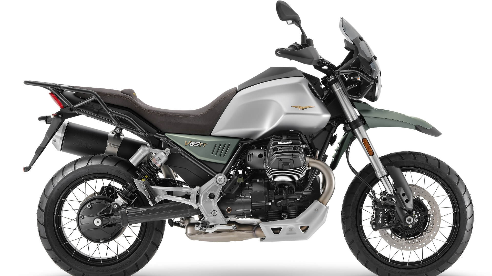 Zelena je isto tako prva boja kojom je Normale, prvi Moto Guzzi, bio ogrnut i vjerojatno najizvornija orlova boja. Centar za stil reinterpretirao ju je suvremenim pristupom s mat završnom obradom te povezao metalik bojama koje izražavaju čvrstoću i autentičnost marke iz Mandella. Boje motocikla usklađene su sa sjedalom prekrivenim materijalom boje prirodne kože koje ističe tipično talijansku pažnju posvećenu detaljima. Drugi posebni detalji su posebni slavljenički logo i zlatna završna obrada poznatog orla.