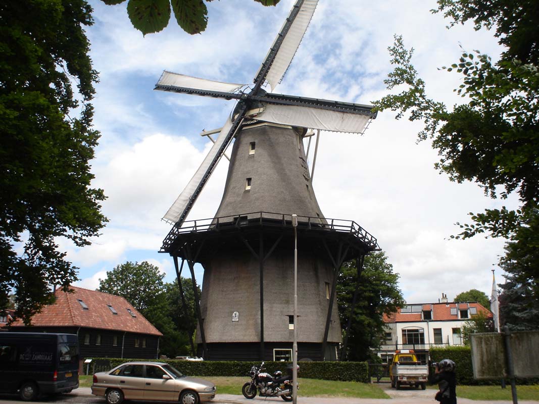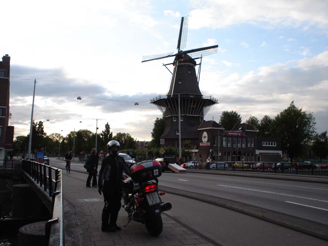 Kamp se nalazi na periferiji i puno je ljepše prezentiran na netu. Nalazi se u neposrednoj blizini geta u kojem stanuju čudni stanovnici, a sve to zajedno obitava ispod velikih petlji autocesta. Trenutno nepada pa odlazimo u grad. Stajemo kod vjetrenjače De Gooyer sagrađene 1725 godine i slikamo je. Tek što smo krenuli dalje „pokupio“ nas je neki melez s pasatom koji je žurio da prođe kroz žuto svijetlo na semaforu.