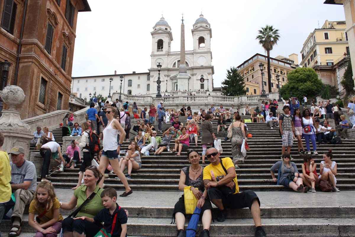 Put nas dalje vodi prema poznatim Španjolskim stubama jednom od simbola vječnoga grada. Ove stube najbolji su spomenik rococoa u Rimu. Dao ih je izgraditi kralj Luj XV između 1723 i 1726 god. a puni naziv im je Scalinata della trinita dei monti. U podnožju stuba nalazi se Berninijeva fontana La Barcaccia. Stvarno veličanstveno. Sjedimo neko vrijeme u mnoštvu na stubama. Gužva je kao u košnici. Ulicom Via Dell Corso koja je prepuna trgovina visoke mode najpoznatijih talijanskih i francuskih proizvođača dolazimo do fontane Trevi.