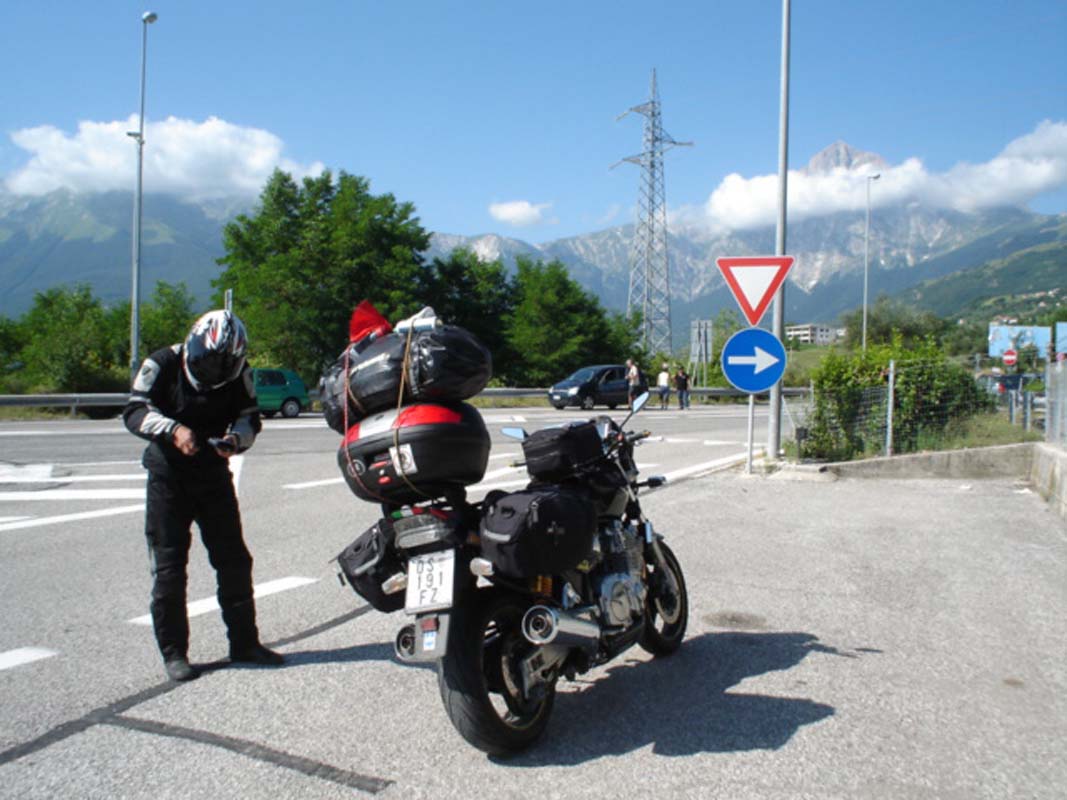 Nakon Ancone i Ravenne vozimo do Riminia, gdje si uzimamo malo duži odmor. To u našem slučaju znači nekih 30 minuta. Prije Venezie kiša nas tjera u kišna odjela. Na našu sreću radilo se samo o lokalnom nevremenu. Već na prvoj benzinskoj pumpi nakon Venezie skidamo kišnjake. Na naplatnim kućicama kod Trsta blagajnica nam zbog 5 centi (35 lipa) koji nam nedostaju medju kovanicama mjenja 200 eura. Negodujemo i tražimo račun jer blagajnici na naplatnim postajama autostrada neće vam izdati račun ako ga sami ne zatražite. Još galame, bune se zbog toga i psuju vas, ako ste bili toliko „bezobazni“ pa zatražili račun za ono što ste platili. Još je na veliko dan pa nakon što smo u par minuta (šala) prošli kroz Sloveniju stižemo na vrata lijepe naše. Kao i uvjek osječaj pripadnosti voljenoj domovini preplavio nas je u potpunosti.