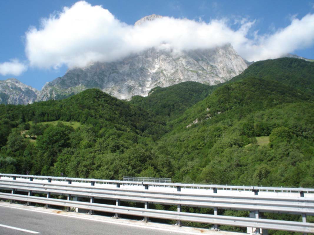 Ovdje u apeninskim brdima dosta je hladnije pa je vožnja puno lakša. Budući da se tu nalazi križanje nekoliko auto strada navigacija nam se malo pogubia pa nas jedan dio puta vodi prema Pescari. Dodala nam je nekih 80-tak km u ukupnom putu. No sve je OK jer je cesta odlična. Prekrasni su planinski pejzaži i prjevoji oko Gran Sasso d Italia.