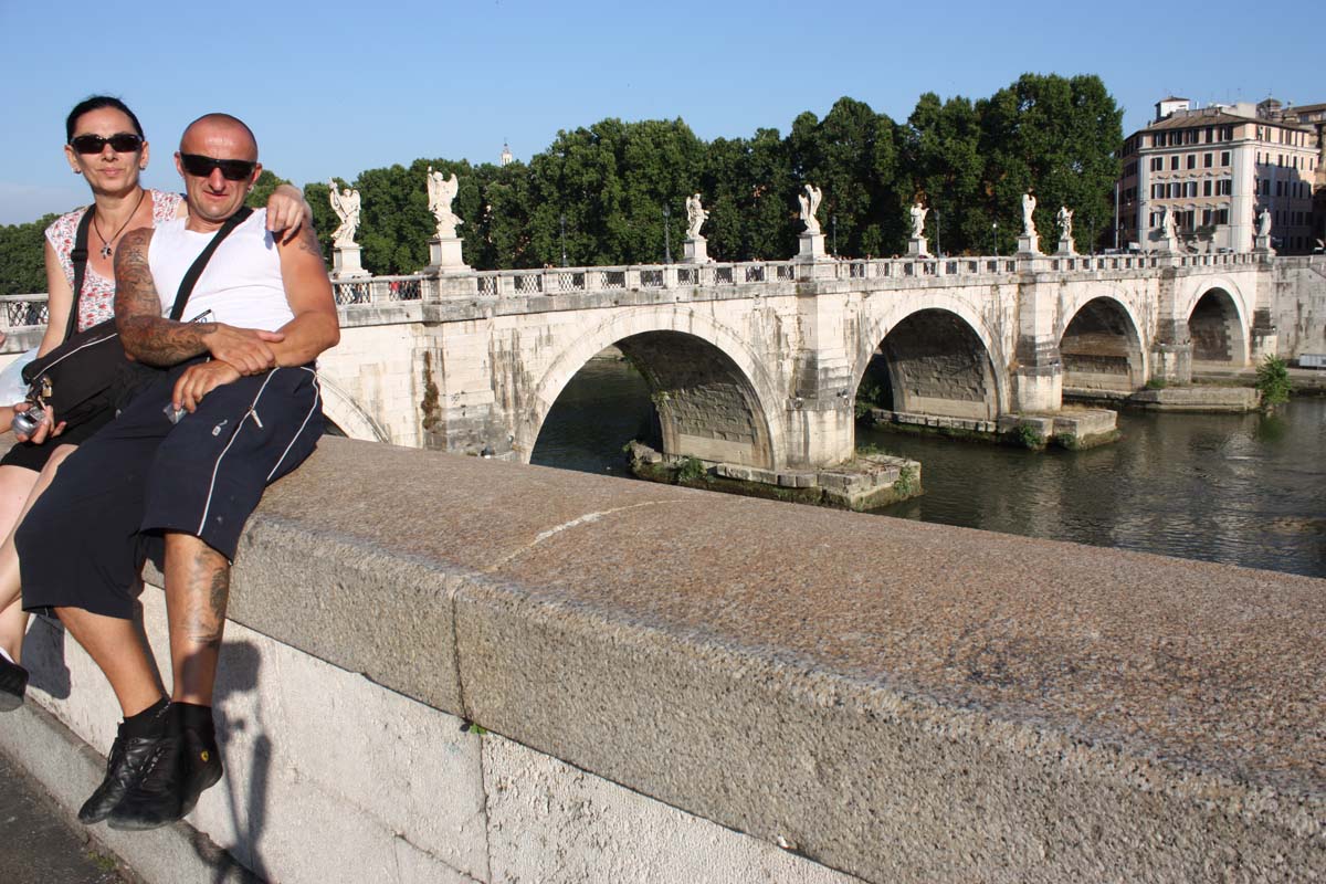 Nažalost jutro sviće s prolomom oblaka i grmljavinom pa čekamo da se vrijeme smiluje i da nam priliku upoznati Rim. Napokon pojavilo se sunce. Kroz neopisivu gužvu probijamo se prema gradu. Vozili smo se motorom kroz Pariz, Madrid, Valenciu, Barcelonu, Amsterdam itd. Ali ovako što još nismo doživjeli. Ovi ljudi voze žešće nego momci iz GP-a, i Isle of Man je zanemariva utrka s ovim brijačima ovdje. Ja bih to rekao ovako: ovdje normalan čovjek dođe zdrav a kući se vrača bolestan. Za luđake je ovo raj i najbolja terapija. Oni su tu na svom i pune baterije.