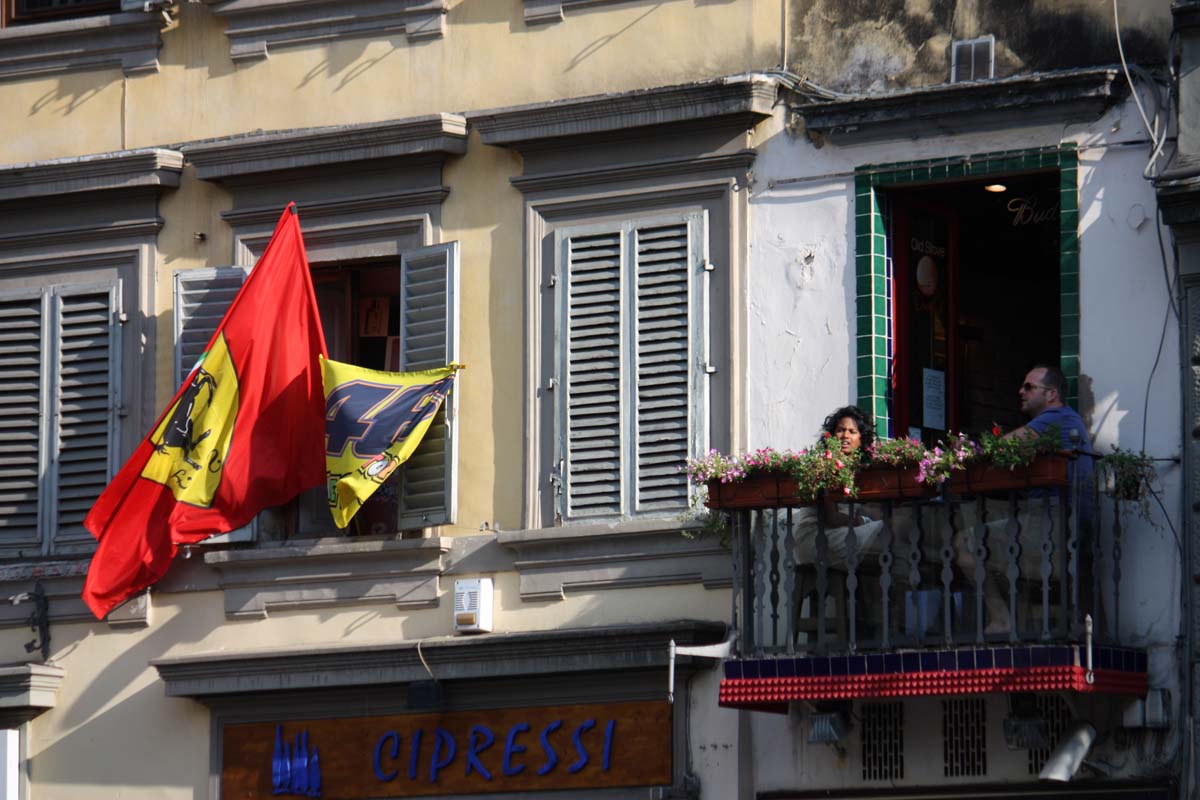 Ovdje na Piazzi kupujem talijansku zastavu koju potom vežem za torbu povrh kofera. Budući da je vrijeme i dalje tmurno smještaj nalazimo 200 m dalje u campu Michelangelo, unajmili smo njihov šator sa tri kreveta (33 E noć). Eto svako zlo za neko dobro, sutra ćemo u Mugello, a danas ćemo pokušati obići dio Firence koji smo propustili prošle godine na svom putu po Toscani.