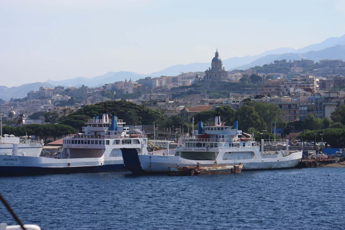 Krenuli smo put Messine. Kroz Palermo prolazimo oko 5,30h. Vrijeme je idealno poluoblačno i nije vruče jer je rano. Tih 300 km do luke u Messini prelazimo za 2,30 h. U luci je gužva, kolona za ukrcaj na trajekt duga je par stotina metara. Ako nebudemo spretni i neprobijemo se naprijed morat ćemo čekati slijedeći trajekt. Netreba niti sumnjati, ušli smo medu prvima na brod. Svaka mi čast, kapa mi dole ili kako se već kaže. Na kopno u San Giovanni dolazimo za 20-tak min.