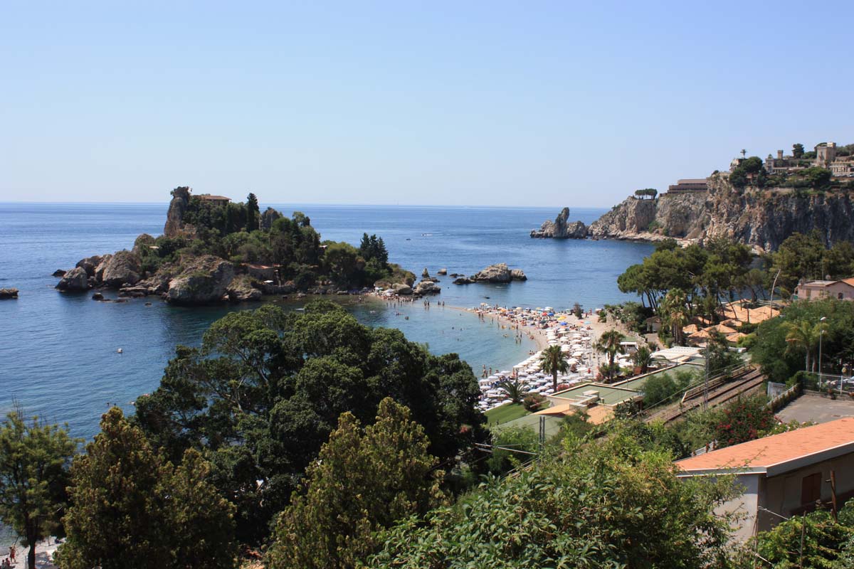Prolazimo kroz predivne predjele. Sa desne strane su nam krševita brda, a sa lijeve modro more. Uskoro se spuštamo u Taorminu budući da je ona jedno od poželjnijih turističkih odredišta na Siciliji. Probijamo se motorima naprijed kroz gužvu i stižemo u jedan kamp uz more. Brzo odustajemo od smještaja jer nam traže 100 eu za bungalov. Prolazimo ulicama Taormine, grada koji se smjestio u kršu iznad mora. Iz svih njegovih dijelova pruža se krasan vidik na okolne otočiće i plaže podno grada. Cesta nas vodi prema Cataniji, i pretrpana je malim turističkim mjestima.