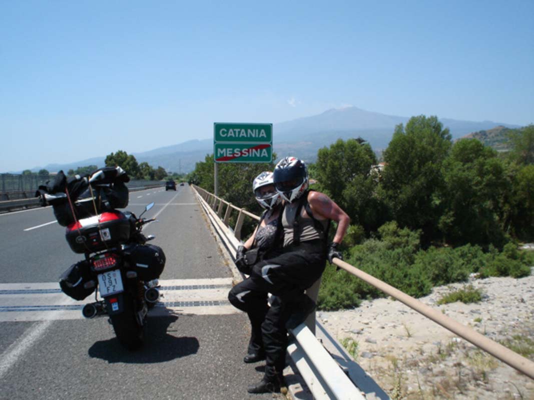 Kupujemo povratnu kartu za trajekt (22 eura) koja uključuje dvije osobe i motor a vrijedi 90 dana. Na trajektu se bolje upoznajemo sa našim frendom. Odlučujemo zajedno naći smještaj u okolici Taormine. Nakon nekih 20 minuta trajekt pristaje u Messini. Za mene je to bio dojmljiv doživljaj, osjećao sam se kao da smo sletjeli na mjesec. Sicilia!!!! U Messini se ne zadržavamo nego auto cestom vozimo prema Taormini.