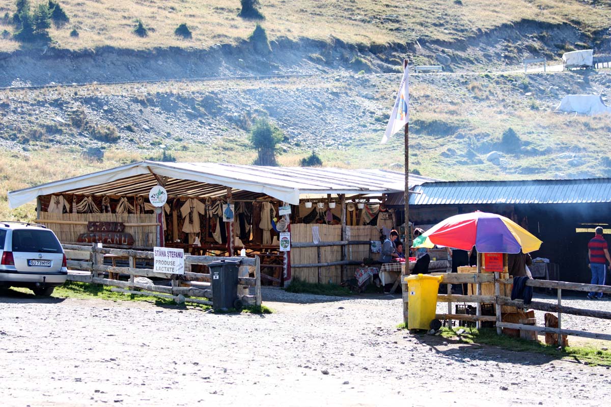 Koji je cilj njihova bjesomučna hoda nismo uspjeli saznati. Sve to zajedno sa navedenim životinjama čini svojevrstan dekor Transalpine kakav se viđa samo u putopisnim emisijama iz nekih egzotičnih i dalekih krajeva. Usponi sada postaju sve strmiji a cesta sve više dobija zmijoliki oblik,odnosno postaje sve zavojitija. Na jednom proširenju smjestilo se jedino divlje odmorište uz cestu -Stana Stefanu. U biti, to je nekakav brže bolje sklepan šator sa drvenim stolovima i klupama za sjedenje u kojem grupa gorštaka spravlja tradicionalna planinska jela iz ovog podneblja, i prodaje razne rukotvorine. Uglavnom su to specijaliteti od janjetine,ovčetine i ponešto divljači, a prodaju razne odjevne predmete,drvene figure te ovčje runo i suvenire.