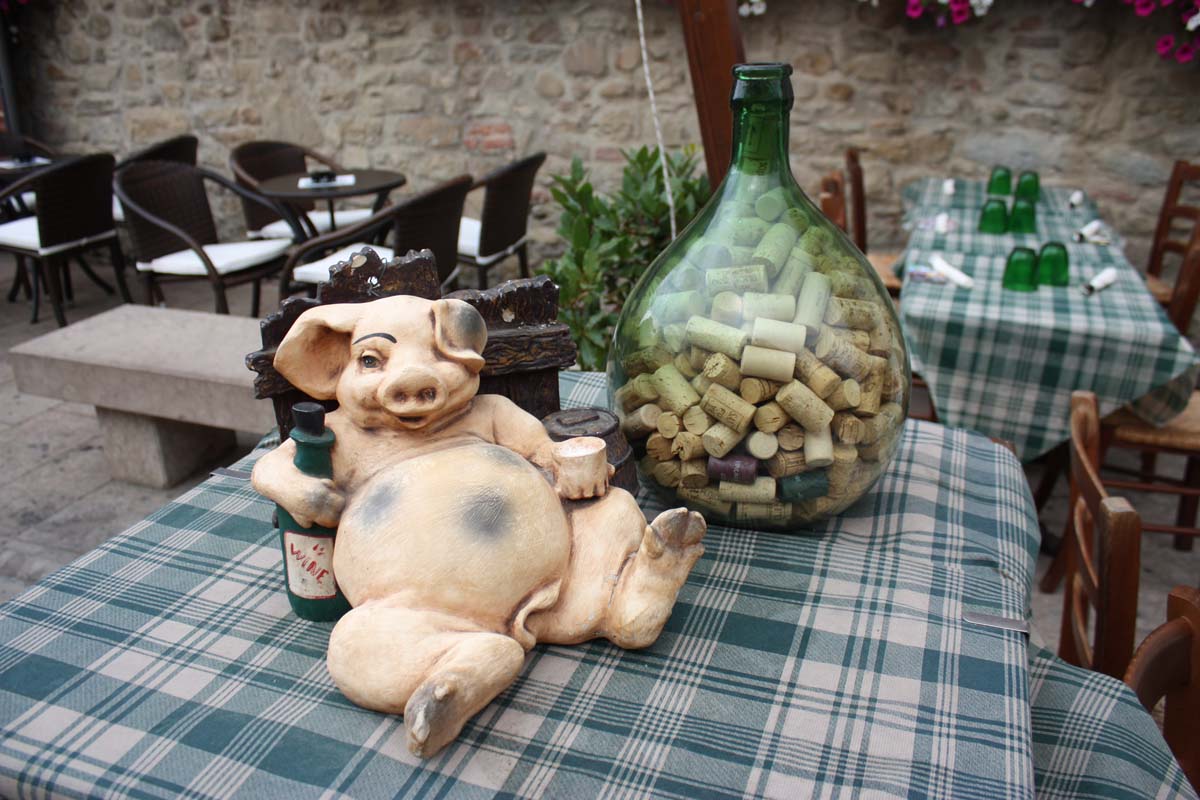 Nakon mukotrpnog uspona nagrada je uslijedila u enoteci Boccacio nasuprot rodne kuće i muzeja slavnog autora Decamerona, Boccacia. Tv serija Decameron se emitirala kada sam ja bio mali dječak. Sjećam se samo nekih golih teta koje su trčale i skakale u masivnoj kutiji koja se i onda zvala televizor. Razlika je što su tete tada bile u onda jedinoj crno bjeloj boji. Kada bih bio na selu kod bake u vrijeme emitiranja Decamerona ona bi odmah prebacila Tv program sa Zagreba 1 na Zagreb 2 koji je bio jedini alternativni, ali učinkovit protiv ovakvih zala. Naravno slijedilo bi križanje i pokoji očenaš. Dakle osvježenje smo pronašli u čuvenoj enoteci, a nakon okrijepe i obilaska ovog gradića spuštamo se 20-tak km južnije do San Gimigana. On je drugi na top ljestvici Toscanskih odredišta. Puno ime mu je San Gimignano Delle Belle Torri (grad lijepih tornjeva). O bogatstvu tog srednjevjekovnog Manhattana svjedočilo je 70 tornjeva od kojih se sačuvalo njih 14. Grad je pun umjetnina iz 14 i 15 stoljeća. Sve je puno turista koji se guraju po ulici i po suvenirnicama.