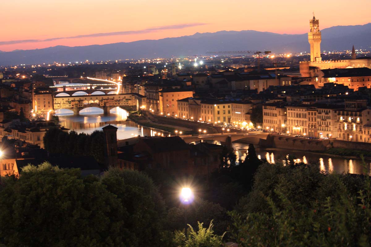 Ovo društvo ovdje temeljito koristi blagodati ovozemaljskog života, kao da su već u raju. Bar znamo na čemu smo. Negine nam kamp koji se nalazi na desnoj obali rijeke Arno koja teče kroz Firencu. U neposrednoj blizini kampa,na piazzi Michelangelo nalazi se vidikovac s kojeg se grad doima kao na dlanu. Stotine turista gura se uz betonsku ogradu tražeći mjesto s kojeg će snimiti najbolju fotku. Smjestili smo se u kampu Michelangelo za 26 Eu po danu.