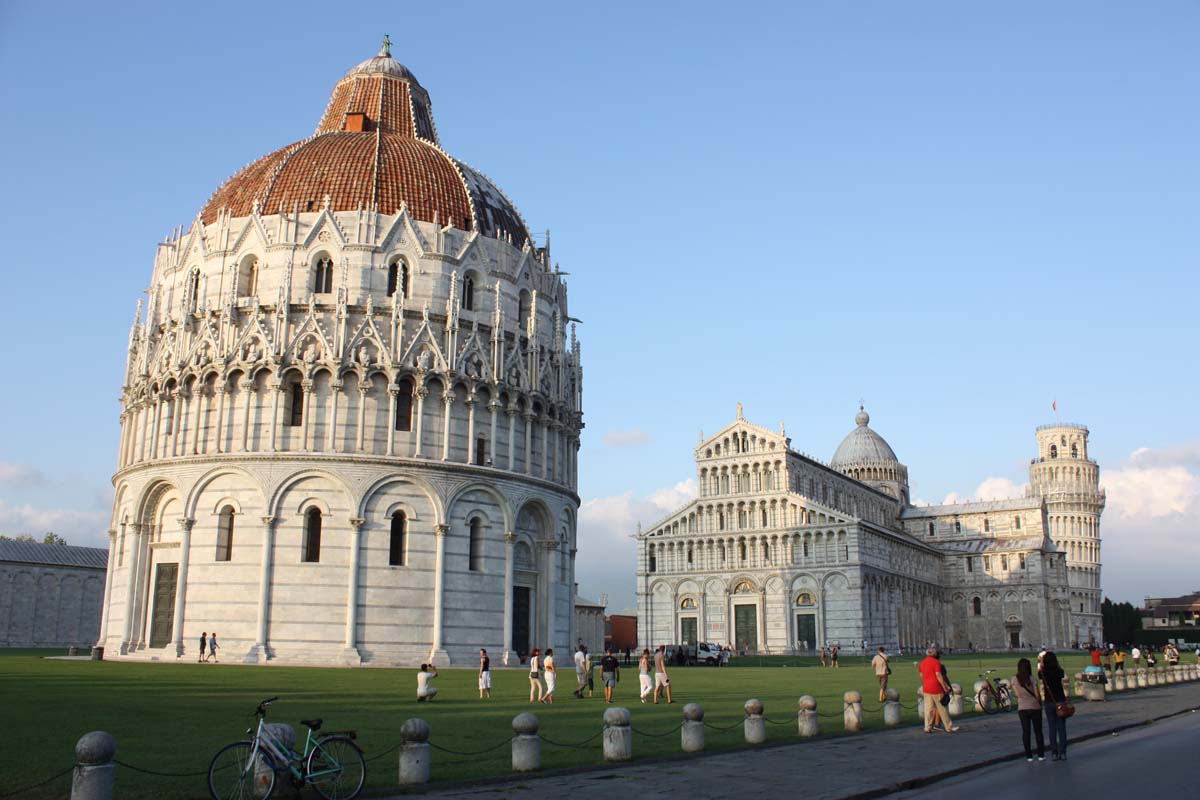 Nakon osvježenja predveče odlazimo do Pise koja je od kampa udaljena 12 km . Stižemo ravno do „Polja čudesa“ najprepoznatljivijeg trga u Italiji. Njegov zeleni travnati sag okružuje romaničke dragulje Pise: katedralu, krstionicu, Camposanto i zvonik, jedan od najpoznatijih simbola Italije, poznatiji kao kosi toranj. Izgleda fantastično. Gradnja ovog tornja počela je 1173 godine. Zvonik se počeo naginjati kada su graditelji stigli do trećeg kata. Bio je pretežak za muljevito tlo. Radovi su zaustavljeni do 1275 godine kada je odlučeno da se toranj pokuša ispraviti dograđivanjem prema okomici. Do 1990 godine toranj je svake godine posjećivalo više od milijun turista, pa se činilo da je njegovo rušenje neizbježno. Toranj je radi rekonstrukcije bio zatvoren do 2001 godine i od tada je posjet moguć samo s vodičem i ograničenim brojem posjetitelja. Uz toranj se nalazi stup na kojem je spomenik vučici, Romulu i Remu. Odlučili smo motorom istražiti i druge dijelove Pise. Vozeći se uz obalu rijeke Arno dolazimo do crkvice Santa Maria Della Spina. Crkva navodno čuva trn iz kristove krune koji je iz svete zemlje donio križar iz Pise.