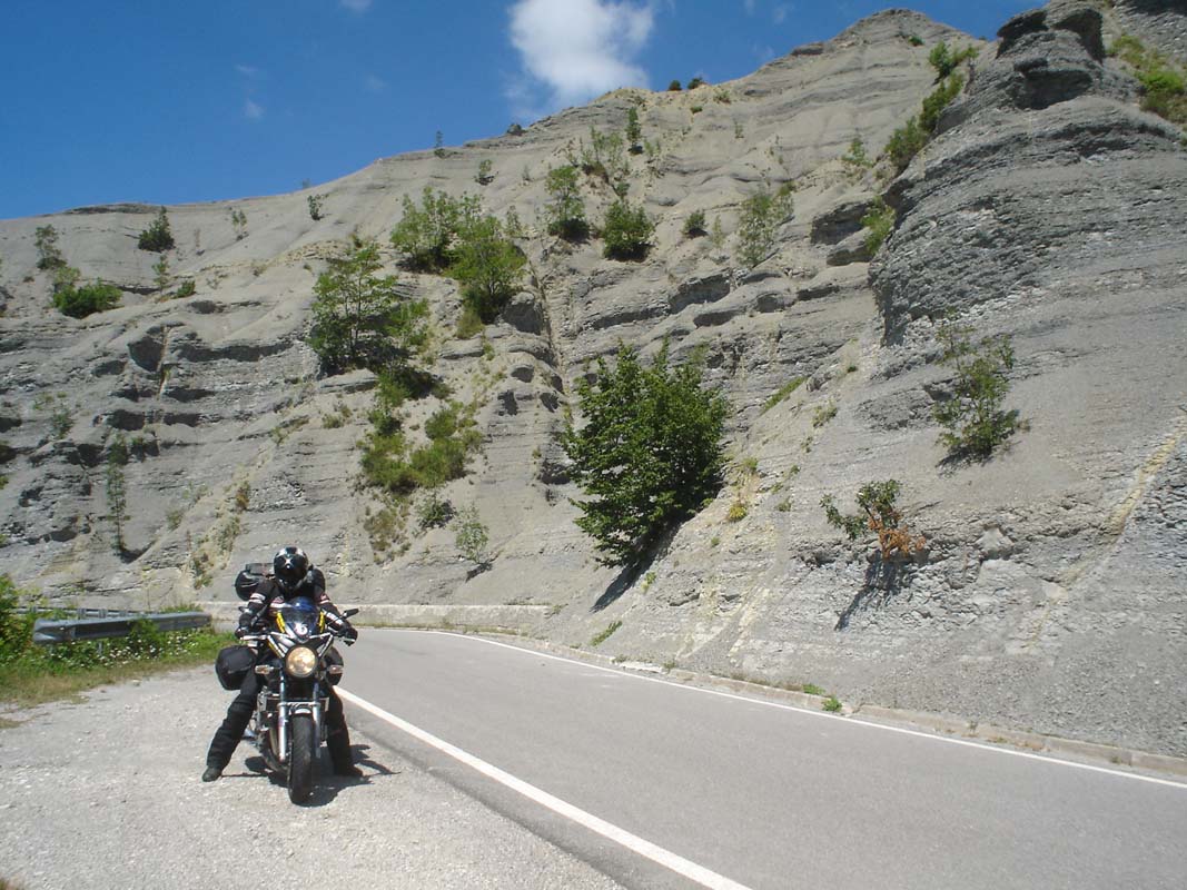 Ovdje počinje pravi tulum. Subota je i ovdašnji motoristi u full opravicama (uglavnom kožnim kombinezonima) jure i utrkuju se baš ovom cestom. Samo zuje oko nas koji se turistički vozimo po njihovoj veekend pisti. U Italiji svi do jednog voze motore i skutere kao da su ih maločas ukrali. Dao bih ja njima svima po ušima ali na godišnjem sam ,vozim se lagano i dobro mi je. Mnogi koji su nas pretekli okreću se u nevjerici misleći da sam neka teška baba koja se ne usudi zavrnuti gas. To me je dobro nasmijalo.