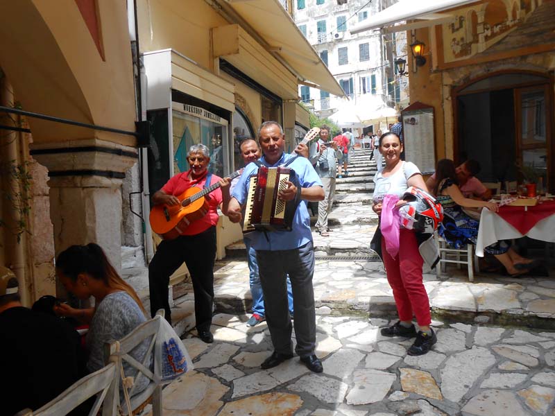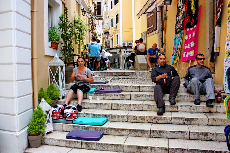 Nakon što smo stvari pobacali po kućici, i pod tušem saprali prašinu sa puta odlazimo do 8 km udaljenog grada Krfa. Krf, Kerkira, Corfu ili kako ga još sve nazivaju ubraja se među najljepše gradove u Grčkoj. Krf je osobit otok i za same grke jer na njemu su talijanski, francuski ali i britanski utjecaj dali posebno ozračje. Parkiramo se u strogom centru i uskim kamenom popločenim ulicama dajemo se u istaživanje ovoga grada. U lokalnoj Pizzeriji uživamo u slasnoj pizzi i pivu Mithos. Grad Krf dao bi se porediti jedino sa čuvenim San Marinom, Nicom ili Saint Tropeom. Ulice su prepune suvenirnica, prodavaonica autohtonih rukotvorina, kožne galanterije i domaćih agrikulturalnih trgovina. Vrlo je slično kao u toskanskim biserima Monte Pulcianu, Montalchiniju, Massi Martimi ili San Girmianu.
