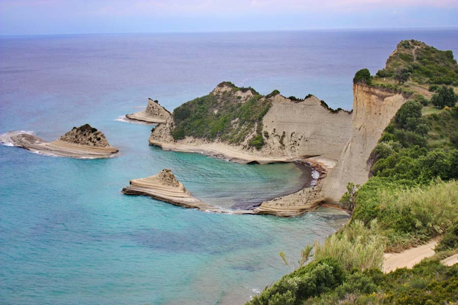 Put je to kroz nepregledne nasade maslina i plodnih polja. Maslina je ovdje više nego li u bilo kojem dijelu mediterana. Vozeći se uskom brdskom cestom uskoro dolazimo do Liapadesa,sela na vrhu brijega. Opojni miris limuna i naranči koji su već potpuno zreli širi se cijelim mjestom. Šetnja tijesnim uličicama postaje pravo zadovoljstvo dok grane limuna i naranči svinute preko ograda nude svoje plodove prolaznicima. Naše današnje odredište su razvedene uvale Paleokastritse do kojih stižemo vijugavom i zahtjevnom cestom preko Lakonesa, još jednog fantastičnog brdskog sela. Odavde s tkzv. balkona Jonskog mora uživamo u gotovo nestvarnoj panorami stjenovitih uvala na čijim su obalama pješćane plaže koje se stapaju s tirkizno plavim morem.