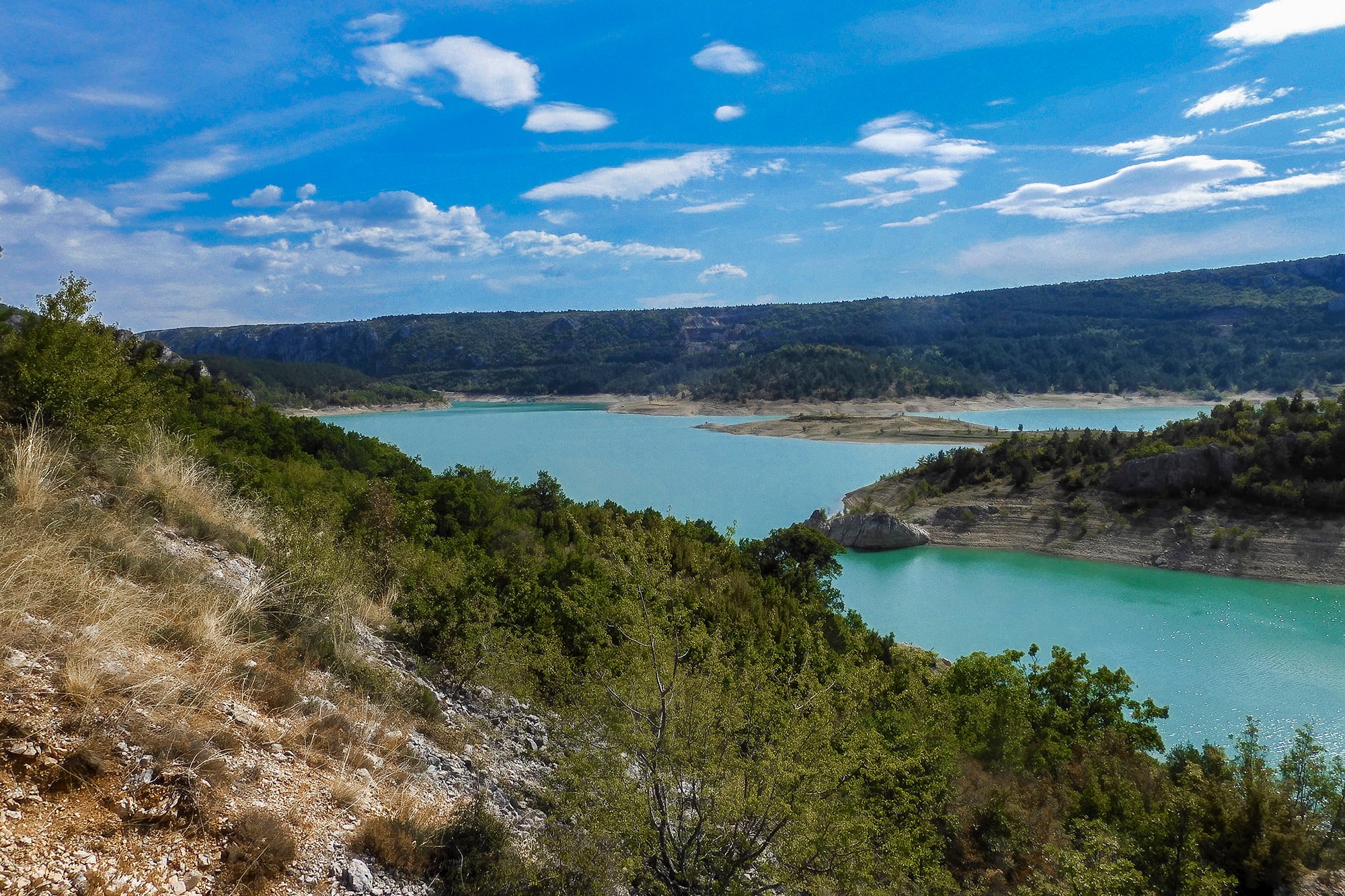Kako ovdje ne bi bio kraj potrudio sam se vratiti do Prološca odakle sam se uputio prema selu Ričice i još jednog prekrasnog jezera, Zelenog. Za razliku od svih drugih jezera ovo jezero je umjetno. 1985. godine sagrađena je brana i dvije male riječice, Vrbica i Ričina potopile su četiri zaseoka i stvorile Zeleno jezero. Jezero je ime dobilo po boji vode koja je nekada možda i bila zelena, dok je danas svijetlo plava, a to je rezultat otopljenog vapnenca. Godina 2012. bila je izuzetno sušna i jezero je presušilo. Kažu da se tada vidio stari most i ostaci nekadašnjih kuća i vinograda.