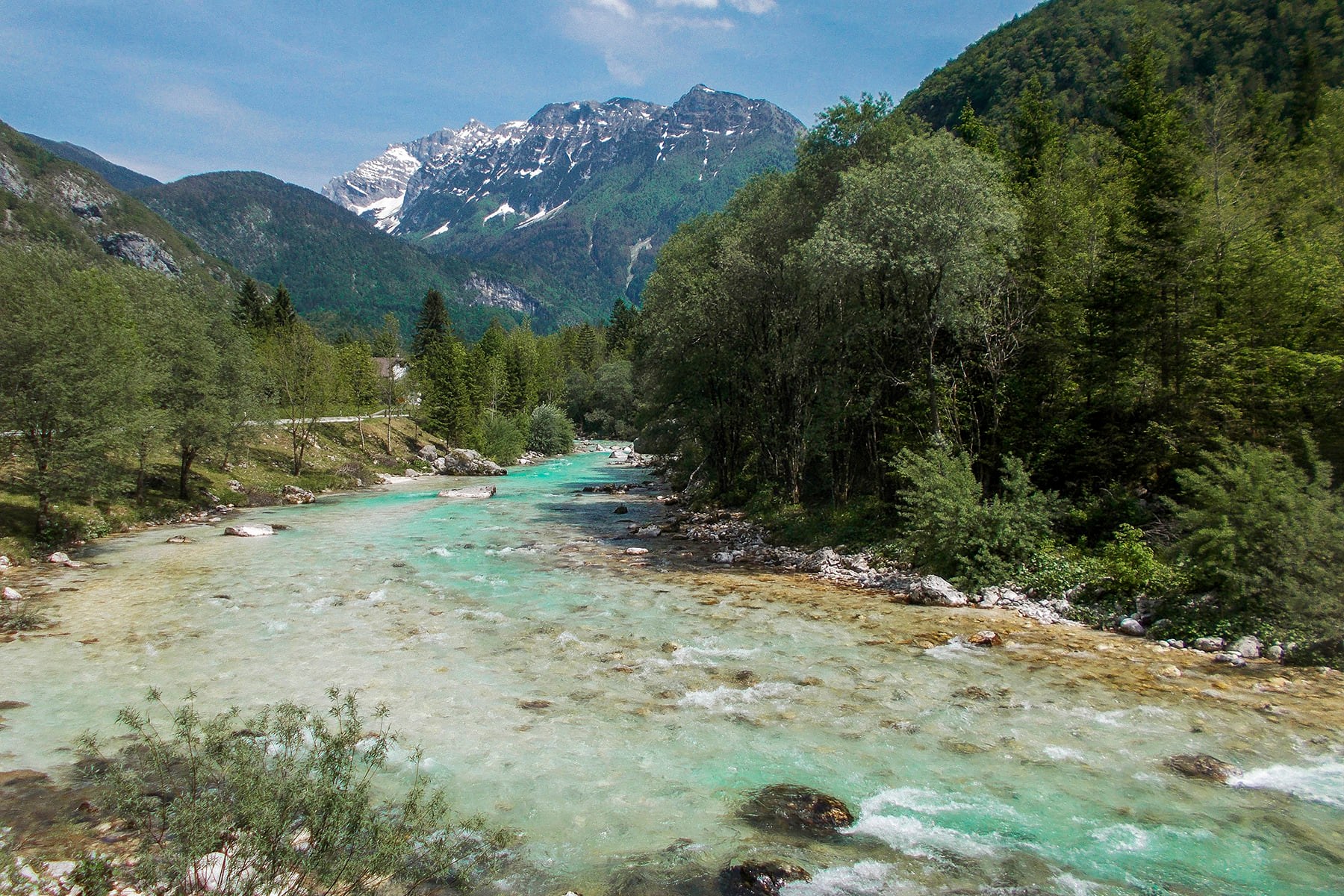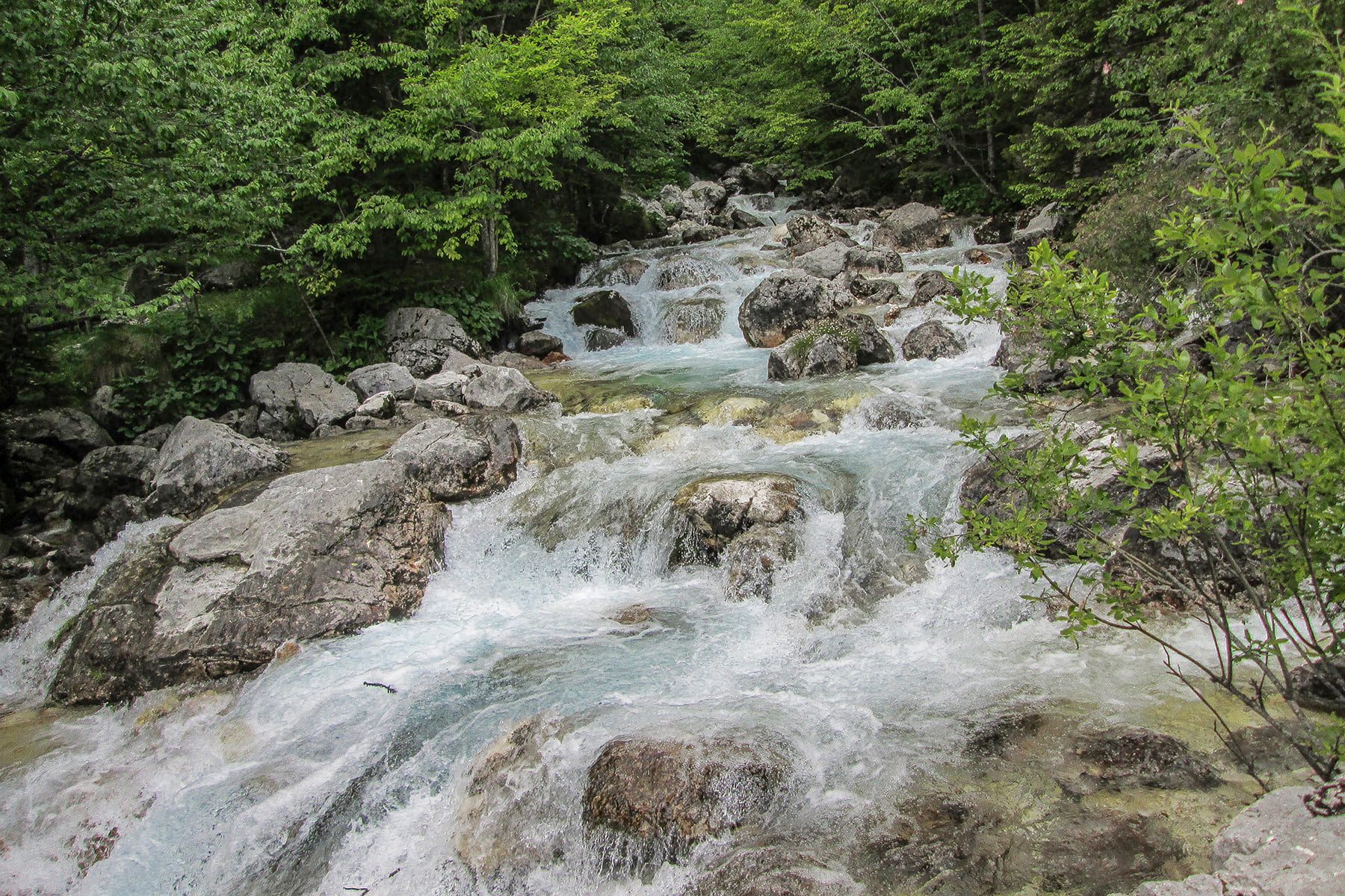 Gornjom Trentskom dolinom vozimo se prema Bovcu. Prolazimo brojne mostove preko brzaka i kaskada dok na vodi vješti kajakaši izvode razne vratolomije. Svako malo zastajemo kako bi se divili nestvarnoj ljepoti rijeke kao i cijelog krajolika nadsvođenog visokim lancima Mangarta i Grintavca.