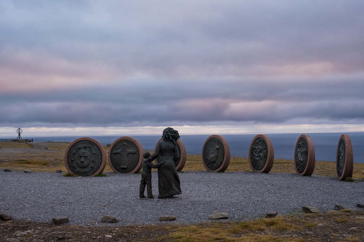 Potiho navlačim čizme, grabim fotoaparat i krećem u lov na koju dobru fotografiju pazeći da ih ne preplašim. Sustižem ih kod skulpture „The Children Of The World“ s reljefima koje su napravila djeca sa svih krajeva svijeta simbolizirajući prijateljstvo, nadu, veselje i zajednički rad. Sobovi doista nisu marili što se šuljam oko njih, tako da sam im se dovoljno približio te zadovoljan uslikanim odlazim do okruglog spomenika, koji simbolizira globus označavajući zadnju kopnenu granicu prema sjeveru. U ovo doba nema nikoga te uživam u fotografiranju uz pogled na pučinu gdje se spajaju Norveško i Barentsovo more.