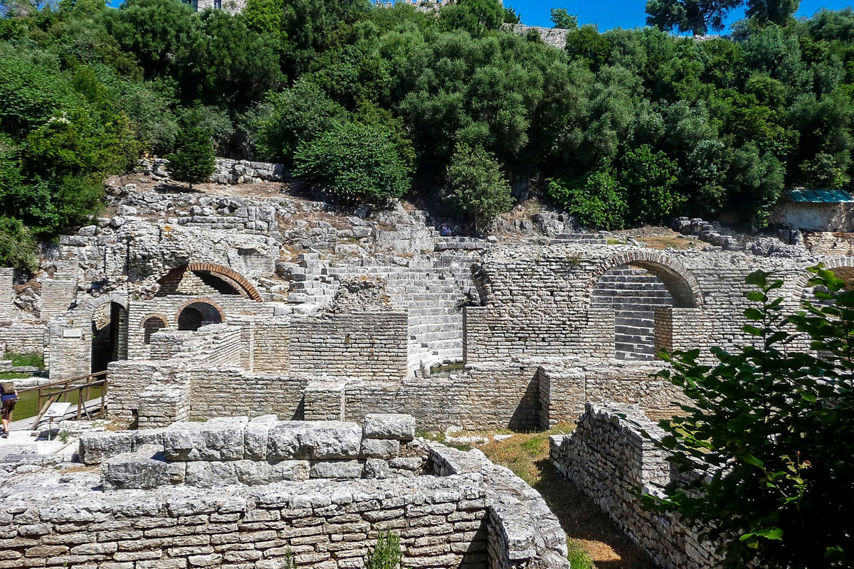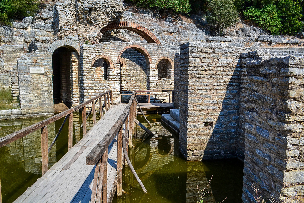 Napuštamo Ksamil i nakon svega par kilometara dolazimo do obale kanala koji povezuje Butrintsku lagunu s otvorenim morem. Preko kanala vozi primitivna drvena skela vučena sajlom. Ali prije prelaska primjećujemo dva autobusa i mnoštvo ljudi. Idemo istražiti kuda su oni to došli i stvarno pogađamo u sridu. Za euro-dva koliko košta ulaznica obilazimo prekrasan arheološki park Butrint. Po onome što vidimo i što čitamo ovaj djelić zemlje je očigledno u povijesti bio izuzetno važan. Tu se nalaze ostaci građevina iz više povijesnih razdoblja. Tako pronalazimo starogrčke ostatke, zatim rimske, bizantske, otomanske i mletačke. Svi su oni ovdje imali svoj utjecaj i svoje interese.