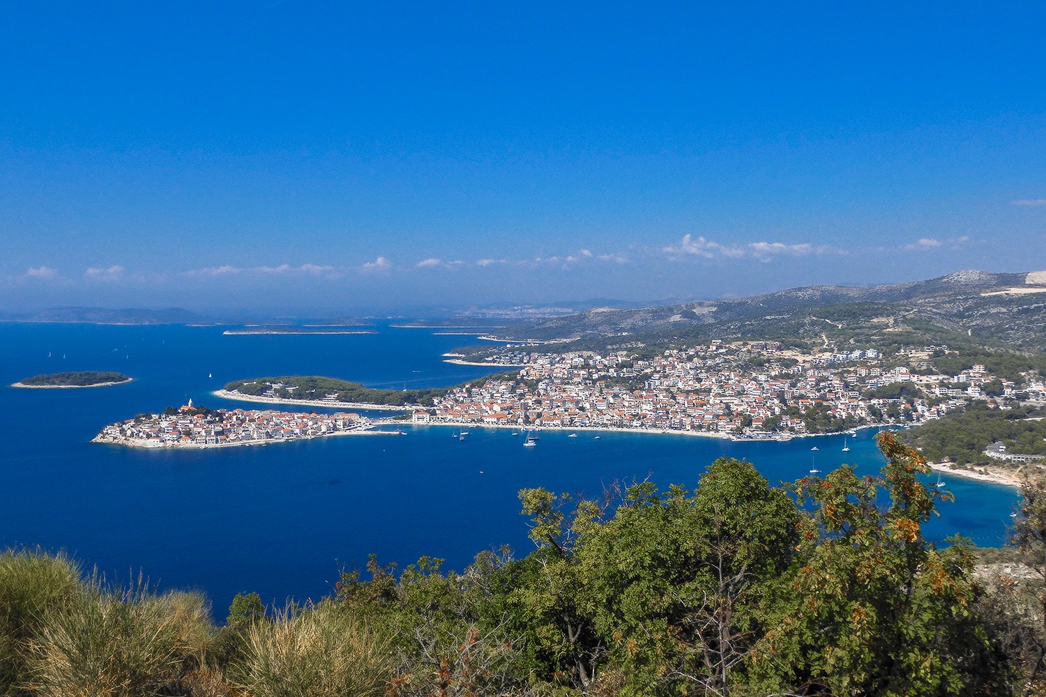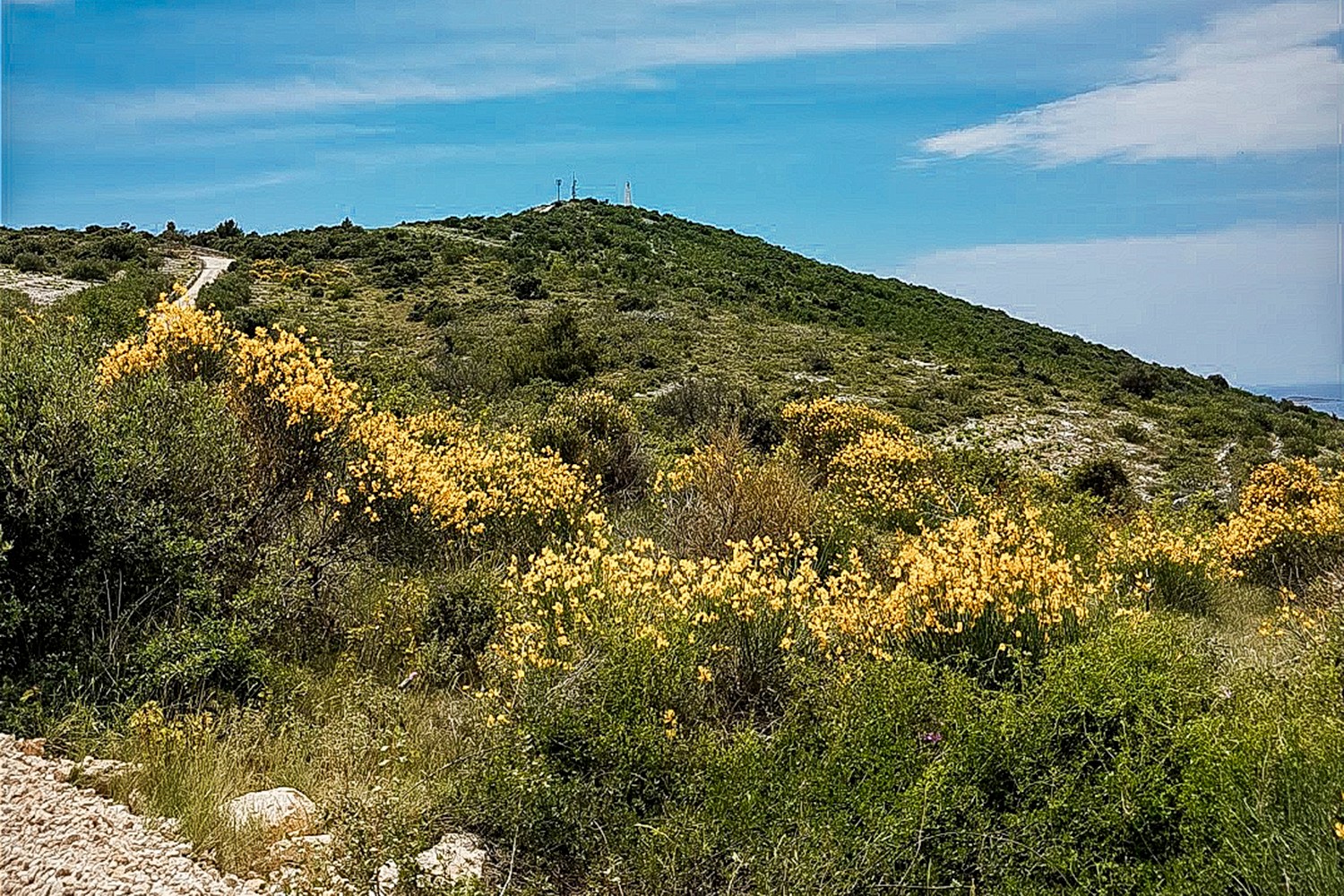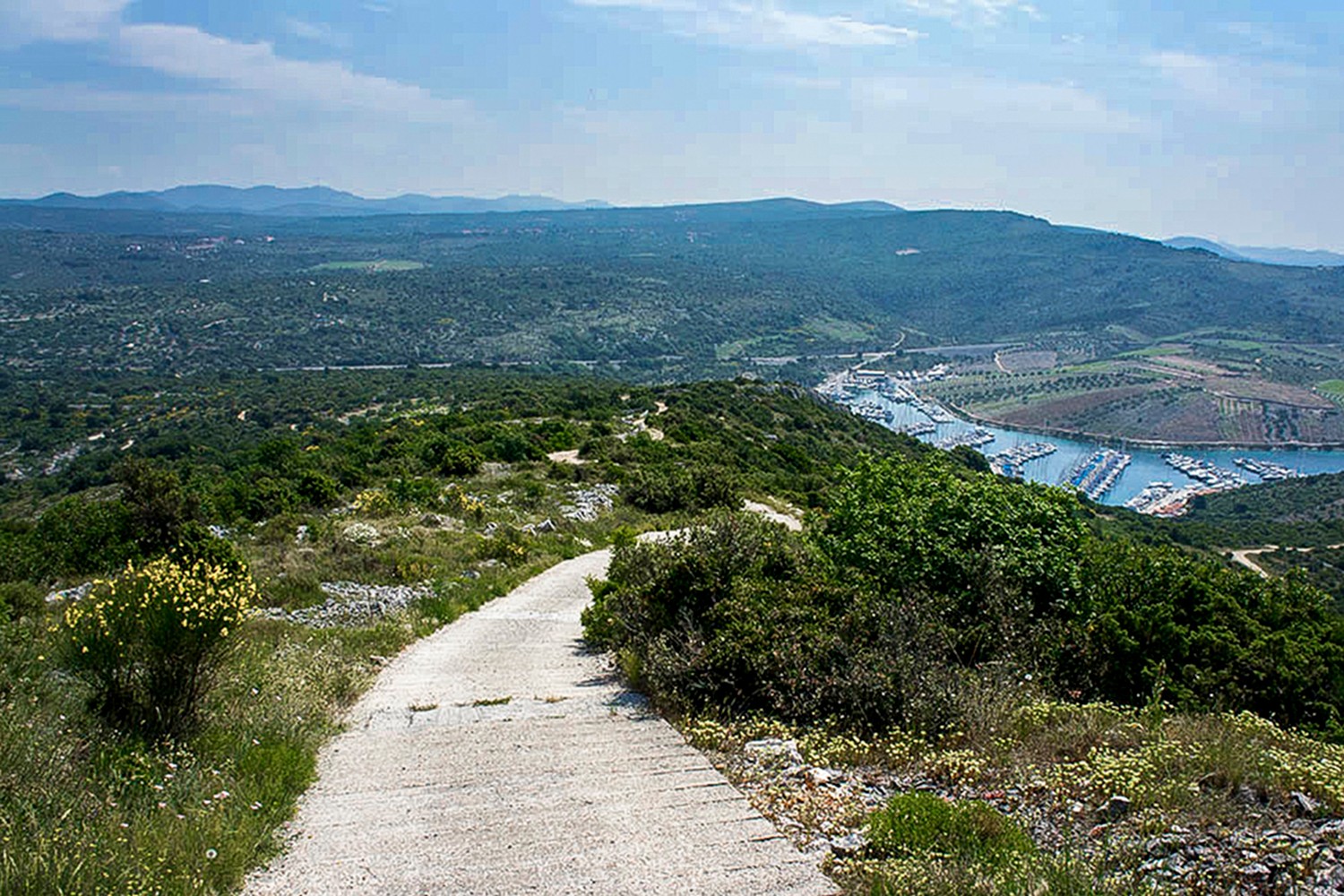 Nakon što sam obišao ovo neobično jezero zaputio sam se u smjeru Primoštena. Izašao sam na magistralu, prošao pored marine Kremik i netom prije dolaska u Primošten skrenuo lijevo na brdo Gaj, na kojem se nalazi kip Gospe od Loreta. Prvih 700 metara vozim se širokom makadamskom cestom lagano se uspinjući prema cilju. Na pola puta nailazim na betoniranu podlogu koja je tu zbog oštrijeg nagiba terena, dok pred sam vrh taj nagib doseže brojku od 21%.