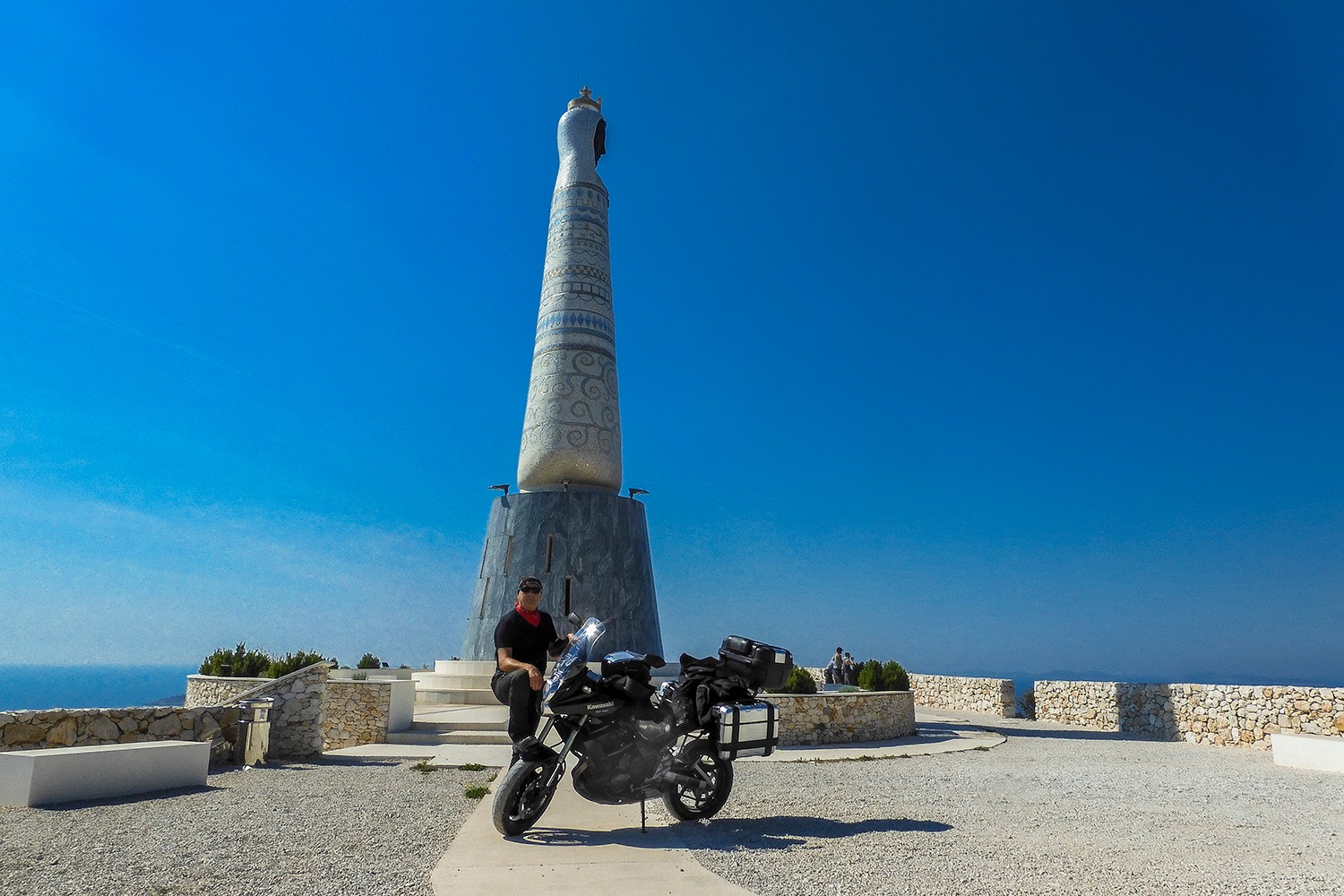 Mislim si ako su mogli tuda na kamionu dovesti kip Gospe i dizalicu koja će ga postaviti, pa onda mogu i ja na motoru. Stisnuo sam gas i za 10-ak sekundi našao se na platou ispred kipa.