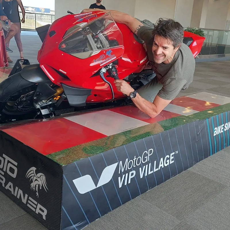 MotoTrainer je sofisticirani simulator vožnje motocikla, dizajniran da realno simulira uvjete na stvarnim MotoGP stazama. Namijenjen vozačima svih razina, od početnika do profesionalaca, MotoTrainer omogućuje usavršavanje tehnike, reakcija i upravljanja motociklom, bez obzira na vanjske uvjete ili rizik od ozljeda.