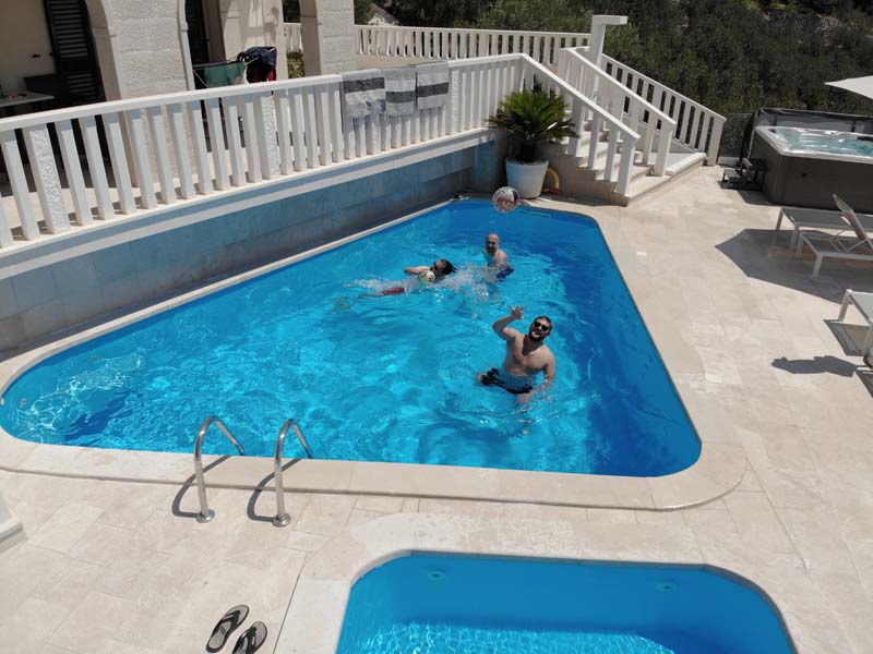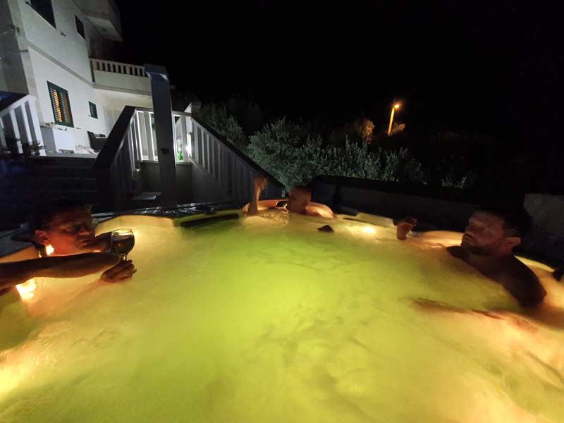 Do Makarske smo išli prateći jadransku obalu, tako da smo uz kratka zaustavljanja na magistrali, stali još u Vodicama i Trogiru. Pred samim ulaskom u Makarsku dočekuje nas lošije vrijeme, poneka kapljica kiše i jak vjetar koji doslovno pomiče motor metar u stranu. Sva sreća to je bilo svega nekoliko kilometara od apartmana pa nismo trebali stajati već smo polako, ali sigurno stigli u apartman. Apartmani su Hrvojevi (Villa Hills, Instagram, Booking – „bacite oko“, preporuka za odmoriti dušu i tijelo) te se tom prilikom u ime nas trojice želim zahvaliti za smještaj i gostoprimstvu, hvala još jednom na svemu! Loše vrijeme nije nas spriječilo da za večeru „bacimo“ roštilj i opustimo se u jacuzziju te tako opušteni i siti završimo drugi dan našeg putovanja.