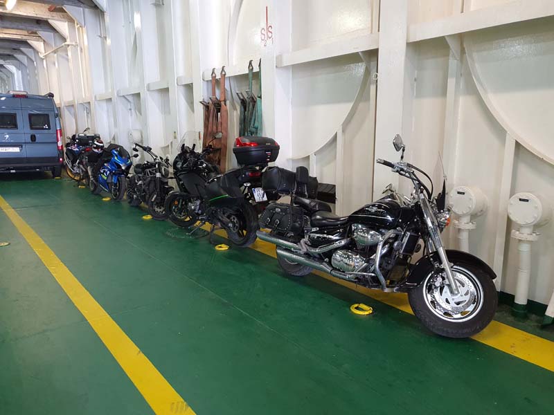 Utorak, 23. lipnja 2020. godine, treći dan. Nimalo ugodno jutro, bura puše kao i prethodni dan i večer. Spremamo se i nadamo se da je samo u Makarskoj takvo vrijeme. Gledamo prognozu i ona je na našoj strani, iako smo morali sakrivati motore u zavjetrinu dok smo ispijali jutarnju kavu u obližnjem kafiću. Naše je današnje odredište Dubrovnik do kojeg ćemo doći preko lijepe Korčule i poluotoka Pelješca. Po buri krećemo u Split na trajekt i ona nas prati sve do samog ulaska u Split, a u Splitu vrijeme ne može biti ljepše, kao da smo u drugoj državi, a ne samo 60-tak kilometara od onog ružnog vremena u Makarskoj. Dolazimo do trajektne luke gdje uzimamo karte do mjesta Vela Luka, Korčula (cijena karte za motor i jednu osobu iznosi 173 kn).
