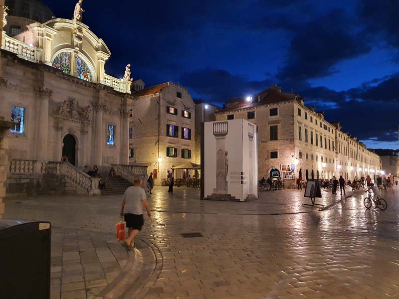 Nakon što smo se smjestili u apartman, odlazimo na Stradun. Ulazimo na Stradun i zateknemo nešto što je gotovo nemoguće vidjeti u ovo doba godine, Stradun je prazan! Pogledamo na terase kafića i restorana, i one su poluprazne. Jako žalosno i neočekivano, ali to su sve posljedice korona virusa koji nas je zahvatio. Odlazimo do restorana i doživljavamo još jedan šok, ali ovaj puta pozitivan, Dubrovčani su prilagodili cijene novonastaloj situaciji tako da smo na samom Stradunu jeli hobotnicu za 88 kn i tuna steak za 90 kn. To nas je toliko iznenadilo da smo tada odlučili ostati još jedan dan u Dubrovniku, jer, kada ćemo opet imati priliku tako povoljno boraviti ovdje. Nazvali smo vlasnika apartmana i rezervirali apartman za još jednu noć (drugu noć smo platili 400 kn). Nakon večere i šetnje starim gradom, vraćamo se u apartman gdje završava naš treći dan putovanja.