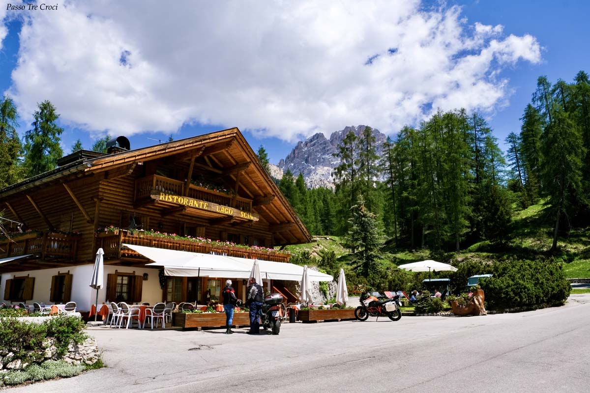 Moje omiljeno mjesto za odmor je restorančić uz jezerce “Lago Scin” pri dnu prijevoja Tre Croci, kilometar ili dva prije Cortine. Izvanredna autohtona kuhinja i mjesto za preporučiti . Najbolje je biti tu malo prije podneva, jer oko 13 sati treba krenuti dalje kako bi se stiglo do Stelvia predvečer.