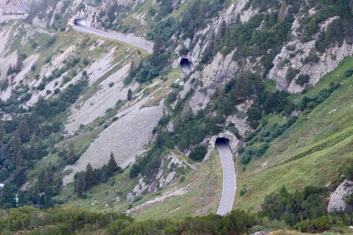 Spuštanje s Grimsela vodi opet predivnom cestom punom zavoja prema mjestu Innertkirchen, gdje treba skrenuti desno na sljedeći motociklistički spektakl; Susstenpass.