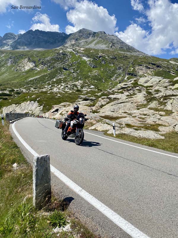 Prema tim prijevojima treba krenuti u smjeru Biasce i dalje prema Bellizoni gdje se kreće na San Bernardino. Na ovoj dionici cesta na nekim dijelovima vodi uz autoput, i tu treba pripaziti. Jer ako zalutate na autoput potrebna je vinjeta koja će vas koštati 40 €. To nije puno ako uzmemo u obzir da vrijedi cijelu godinu, ali za tako kratku dionicu predstavlja nepotrebni trošak.