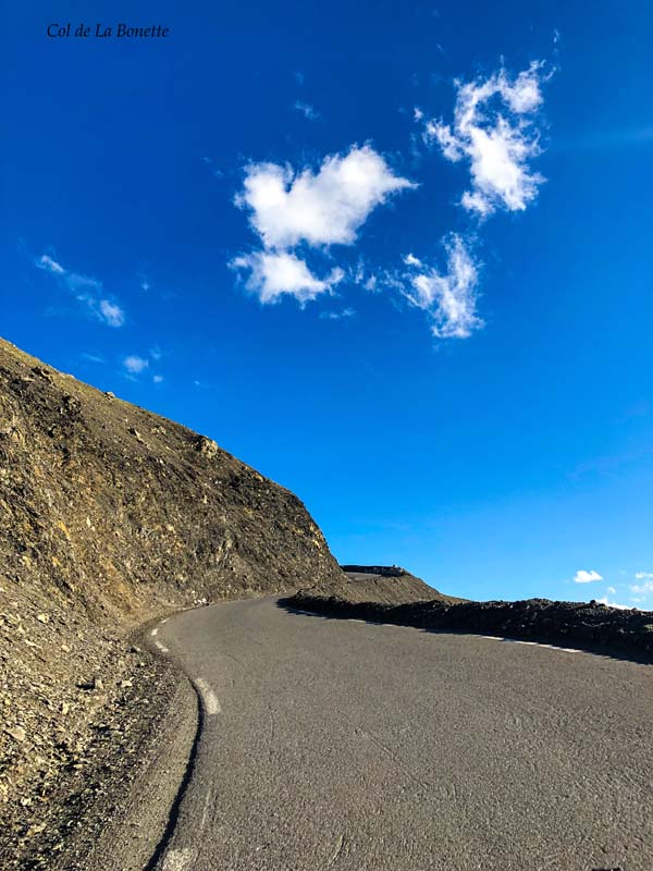 S ovim prijevojem već smo izašli iz Savoije, i sada smo u Alpama Provanse koje se vežu na Azurnu obalu tako da se osjeti toplija klima i mediteranski ugođaj. Bez obzira na blizinu obale, ovdje se nalazi najviši prijevoj Col de Bonette s 2.802 metara nadmorske visine, a prema kojem krećemo zavojitom cestom u dolini. Ta cesta je na nekim mjestima uklesana u stijene i svako toliko začinjena kamenim tunelom u stilu Rute Napoleona. Slijedi Col de Vars preko kojeg je sjajna vožnja s malo lakšim zavojima, a to je i pravi uvod za Bonette na koji se kreće iz mjesta Jausiers.