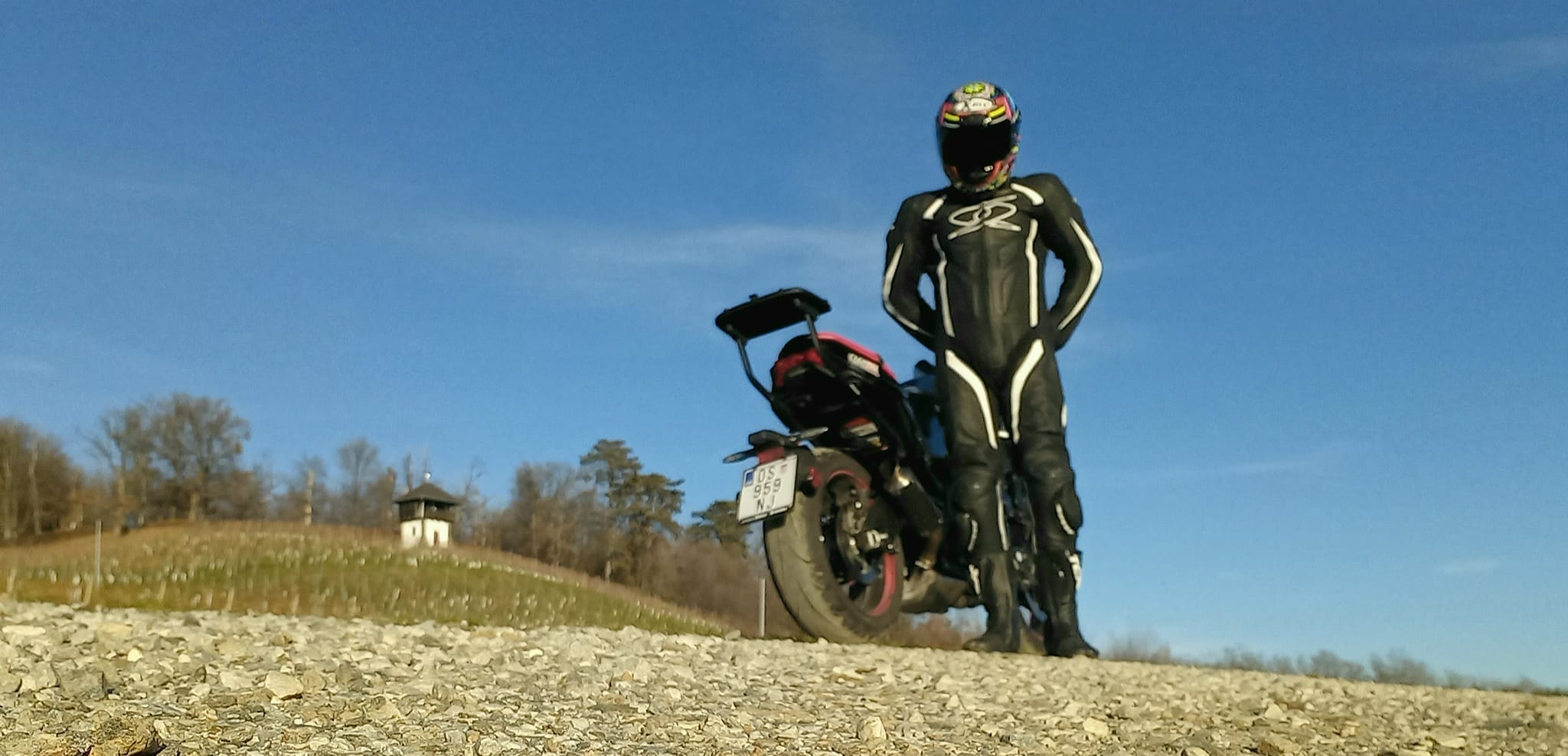 Obrisi Ružice grada štite mi oči od sunčevog sjaja dok se penjem u planinu. Van očekivanja cesta je potpuno suha, a snijega kojeg sam krenuo tražiti nema ni u tragovima. Hladno je no vizir moje X - litice se ne magli..odlična je to kaciga...replica Chaz Davies..više natjecateljska nego touring...no sve ipak za ljepotu i strast nego za funkcionalnost.