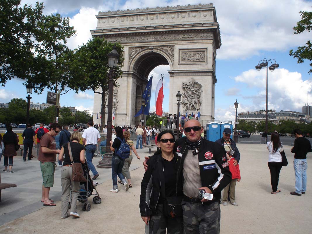 Dugo u noć razgovaramo i planiramo naredne dane. 13 je srpnja dan uoči praznika Francuske državnosti. Ustajemo i krećemo motorima u grad. Sve je puno gandarmerije ali se ne osjeća napetost i sve je dostupno turistima bez ikakovih ograničenja. Prvo stajemo kod trijumfalne kapije na placu Charles de Gaulle odakle se pruža velika avenija Champs-Elysees. Slavoluk pobjede visok 50 metara impozantno je sjećanje na Napoleona. Tu je 26. kolovoza 1944. godine Francuski narod na čelu s generalom de Gaulleom proslavio oslobođenje.