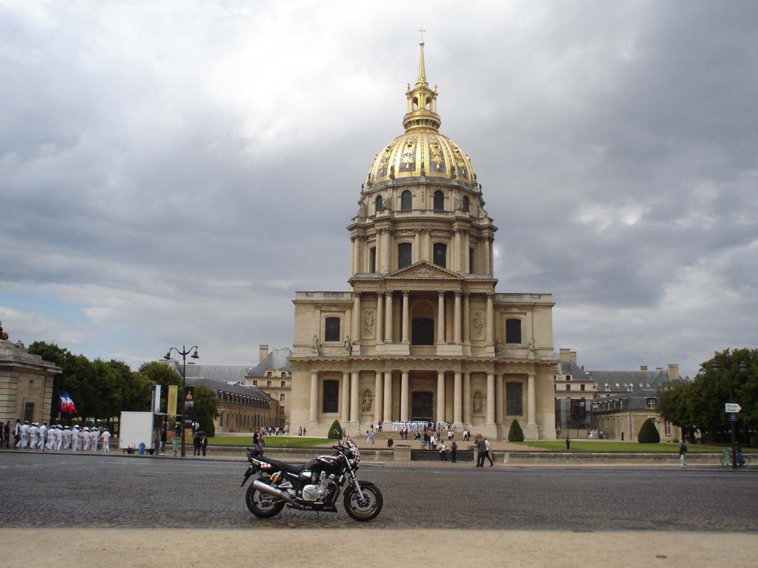 Vraćamo se po motore pa se vozimo kroz veliku gužvu i dolazimo pred impozantnu zgradu Pantheona i doma invalida. Tu sakralnu građevinu sa zlatnom kupolom dao je sagraditi Luj XIV. U unutrašnjosti nalazi se Napoleonov sarkofag od crvenoga finskog porfira (kamena). Ovdje je sahranjena i večina njegovih generala, a u dvorištu Pantheona izložena su i oružja iz svih Napoleonovih ratova. Htjeli ili ne dok sve to gledate prožima vas neka jeza, brrr. U Pantheonu iza portika s korintskim stupovima nalaze se nadgrobni spomenici Voltairea, Vistora Hugoa, Emila Zole i drugih velikana. Vrijedno je vidjeti. Umorni odlazimo na večeru.
