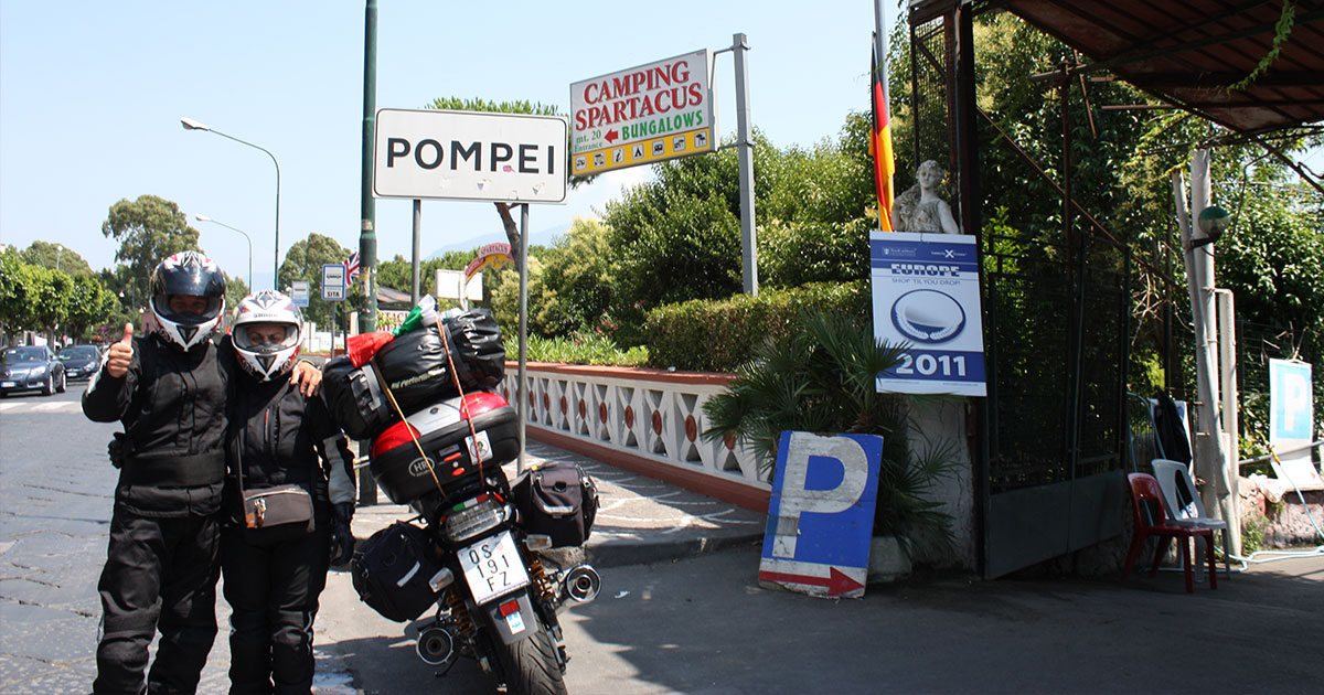 Na kraju ovog zanimljivog ali napornog dana odlazimo do jednog bara kod fontane Trevi gdje je gledamo u noćnom ruhu. Jutro sobom donosi i nove kilometre. Današnji cilj su nam Pompei do kojih stižemo autocestom po velikoj vrućini. U Napoli ne ulazimo zbog prevelike gužve. Nama s lijeva uzdiže se Vezuv. Iako je već odavno mrtav izgleda prijeteće u odnosu na okolinu. Smještamo se u campu Spartacus nasuprot drevnog spaljenog grada Pompeja.