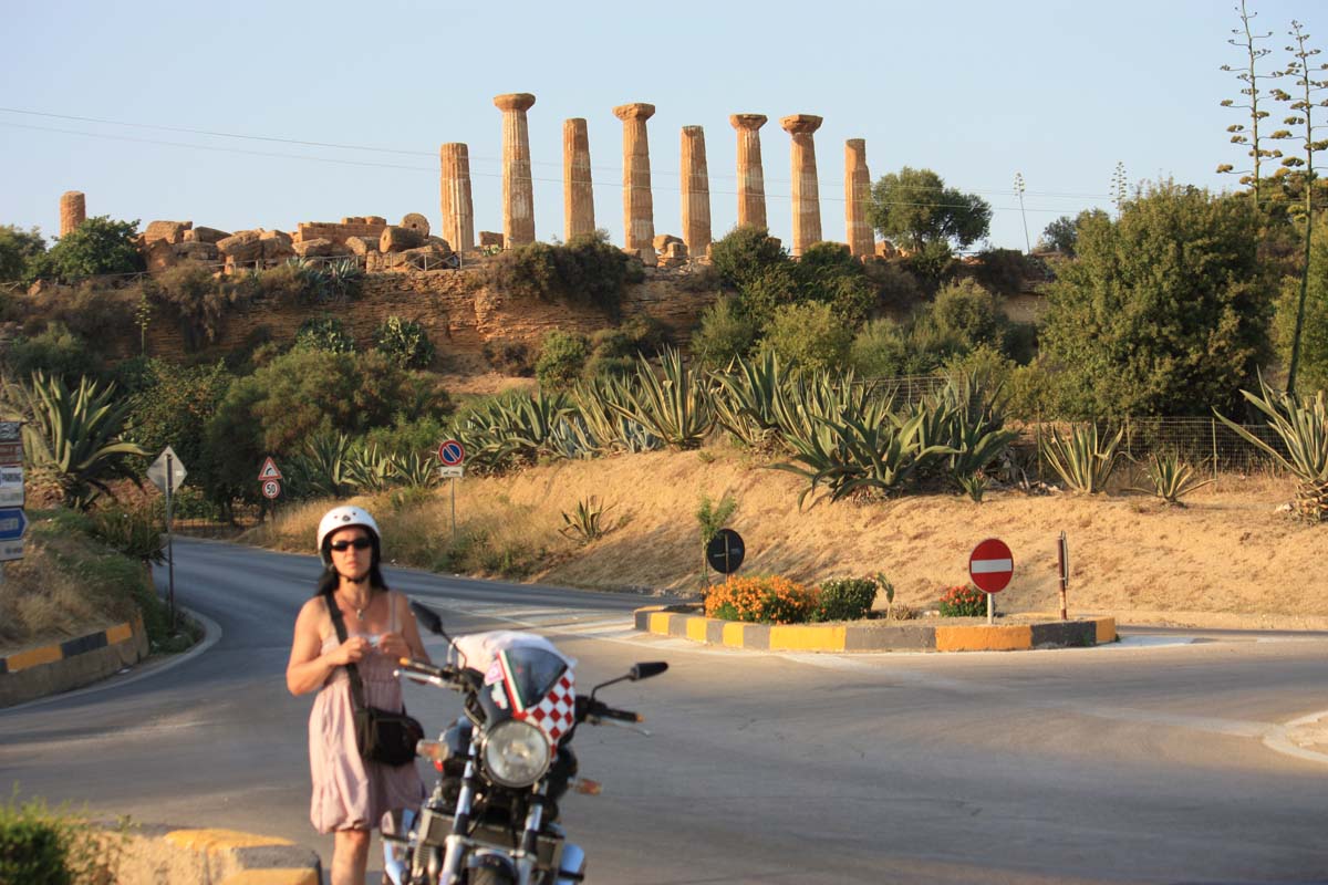 Zaustavljamo se na ulazu u arheološki centar. Jakne, kacige i tank torbu ostavljamo na čuvanje u suvenirnici i odlazimo u obilazak hramova. Kroz prašinu i kaktuse dolazimo do jednog od najvećih Grčkih hramova na svijetu. Stupovi su mu visoki 16 m i izgleda zaista impresivno. Na ovom velikom arheološkom području osam hramova obilježeno je slovima od A do H. Selinunte je utemeljen 628 pr.n.e. i živio je stolječima u blagostanju, dok ga Kartažani nisu sravnili sa zemljom. Stanovnici su se tijekom vremena iselili iz grada ali veličanstveni dorski hramovi i danas su podsjetnik na njegovu nekadašnju slavu. Vraćamo se do parkinga gdje se osviježavamo sa nekoliko piva.