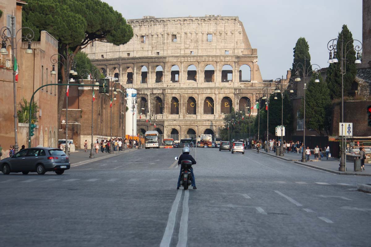 Nažalost jutro sviće s prolomom oblaka i grmljavinom pa čekamo da se vrijeme smiluje i da nam priliku upoznati Rim. Napokon pojavilo se sunce. Kroz neopisivu gužvu probijamo se prema gradu. Vozili smo se motorom kroz Pariz, Madrid, Valenciu, Barcelonu, Amsterdam itd. Ali ovako što još nismo doživjeli. Ovi ljudi voze žešće nego momci iz GP-a, i Isle of Man je zanemariva utrka s ovim brijačima ovdje. Ja bih to rekao ovako: ovdje normalan čovjek dođe zdrav a kući se vrača bolestan. Za luđake je ovo raj i najbolja terapija. Oni su tu na svom i pune baterije.