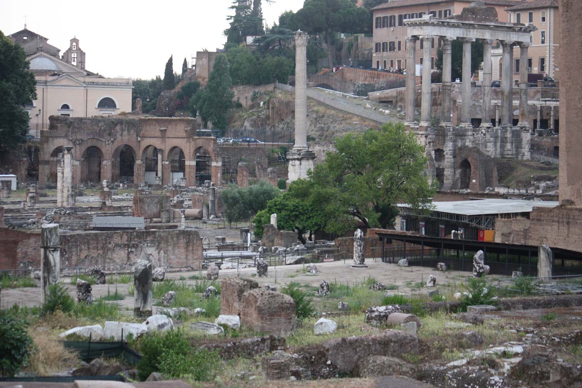 Hodajući susrećemo se i sa drugim licem ovog grada a to su velika prljavština, more prosjaka i poneke grupice prosvjednika koje nerazumijemo tako de neznamo protiv čega se bune. Budući da su ulice prepune smeća to prilično kvari sliku Rima kao grada živog muzeja. Stigli smo do ostataka Rimskog foruma. Njegova povijest seže 3000 godina u prošlost kada je ovdje bilo močvarno groblje. Kako je rasla moć rimske države rastao je i forum postajući sve poznatiji. Vremenom preuzima središnju ulogu u životu Rimske republike. Za vladavine prvog Rimskog cara Augusta od grada opeka pretvorio se u grad od mramora.