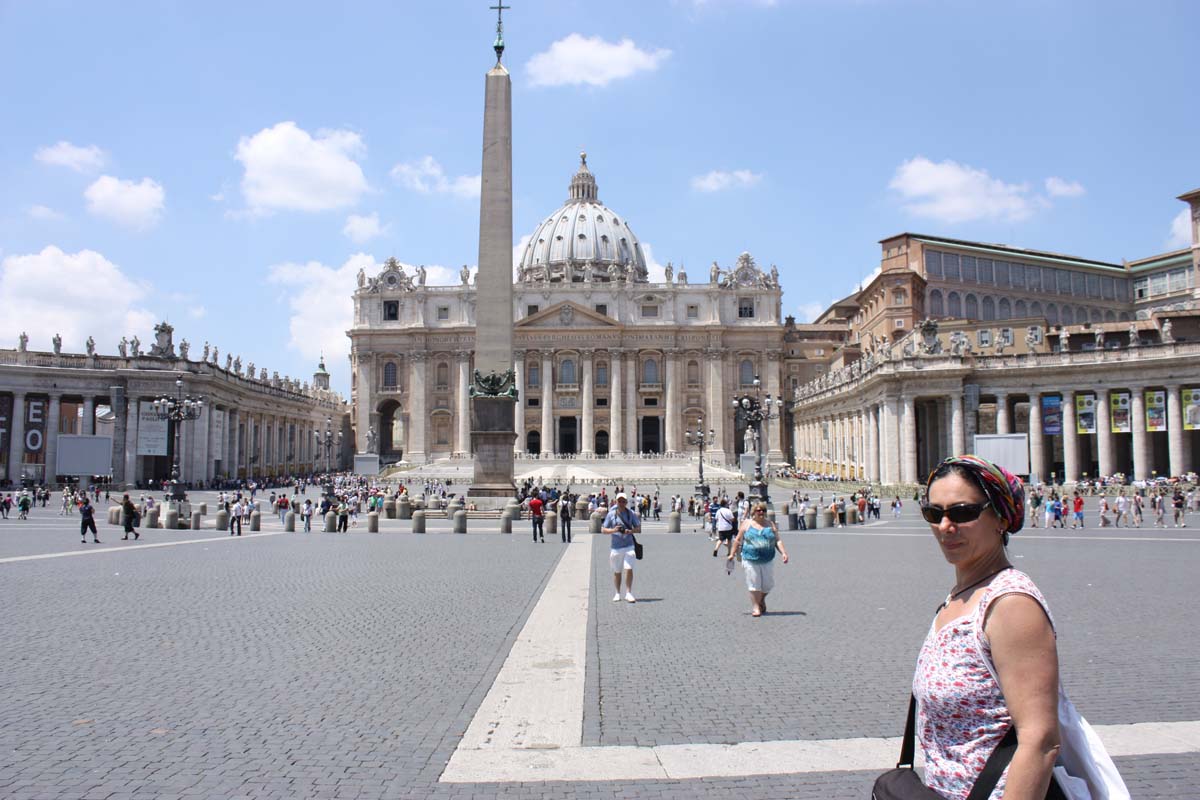 Odlazimo na spavanje jer ujutro nas čeka Vatikan. Nakon jutarnje kave upisujemo u Garmina ime Vatikana i on nas dovodi tik do trga Sv. Petra. Nemoguće je pronaći parkirno mjesto ili dio pločnika na kojem bi parkirali motor. Pomičemo jedan kontejner za smeće na nečiji kolni ulaz i pravimo mjesta za našu Yamahu. Zaključavamo je aktiviramo alarm i odlazimo u najmanji grad državu na svijetu Vatikan. U pošti molimo da nam udare žig u putovnice za uspomenu no ležerno nas odbijaju. Dolazimo do ogromnog trga Sv. Petra na čijoj sredini dominira visoki obelisk. Berninijeve ovalne kolonade pretvaraju prilaz bazilici Sv. Petra u ruke koje u zagrljaj zovu vjernike i nude im dobrodošlicu. Trg krasi i velika slika Ivana Pavla II koja će vjerovatno još dugi niz godina stajati kao podsjetnik na ovog izuzetnog čovjeka i Papu kojeg su voljeli mnogi diljem svijeta.