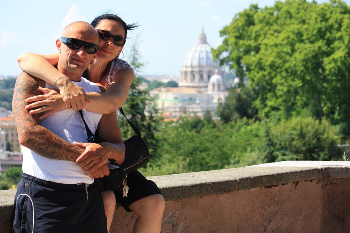 Dugo čekamo u redu za ulazak u Baziliku. Tek što smo se domogli ulaza mene unutra ne puštaju zaštitari zbog prekratkih rukava na majici. Morat ću se zadovoljiti šetnjom van sakralnih objekata unutar Vatikana. Razočaran ali ne i nesretan fotografiram ono što mi je dostupno a toga je doista mnogo. Vruće je 38 C, gomila se tiska u redu za ulazak u crkvu a ja gledam naše sljedeće odredište na karti vječnog grada. Odlazimo brdskom cestom do Gianicola na vrh hrpta koji Vatikan odvaja od Trasteverea i odakle se pružaju najljepši pogledi na grad. Ovdje je također prekrasan park u kojem se održavaju lutkarske predstave. Trgom dominira konjanički spomenik Garibaldiju i njegovoj supruzi Aniti koja je ovdje sahranjena.