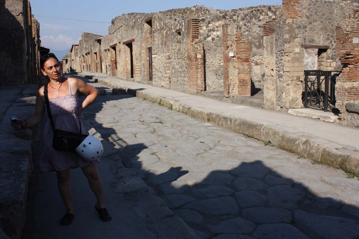 Kacige na glavi lokalno stanovništvo nema ili ih ne koristi, uključujući i policiju koja se ni ne pokušava upustiti u prometna događanja nego i oni krše zakon gdje god to mogu. Prostitutke hodaju danonoćno ulicama no na njih malo tko obraća pažnju. Nakon kraćeg obilaska grada ulazimo u povijesnu jezgru starih i uništenih Pompeja. Ulaznica je 11 eu po osobi. Već na samom ulazu zaključili smo da se radi o nekoć velikom gradu koji je Vezuv nesebično počastio gomilom lave i pepela ne ostavivši mu ni najmanju šansu za preživljavanje. Grad je građen po principu šahovske ploče i sve su ulice gotovo identične.
