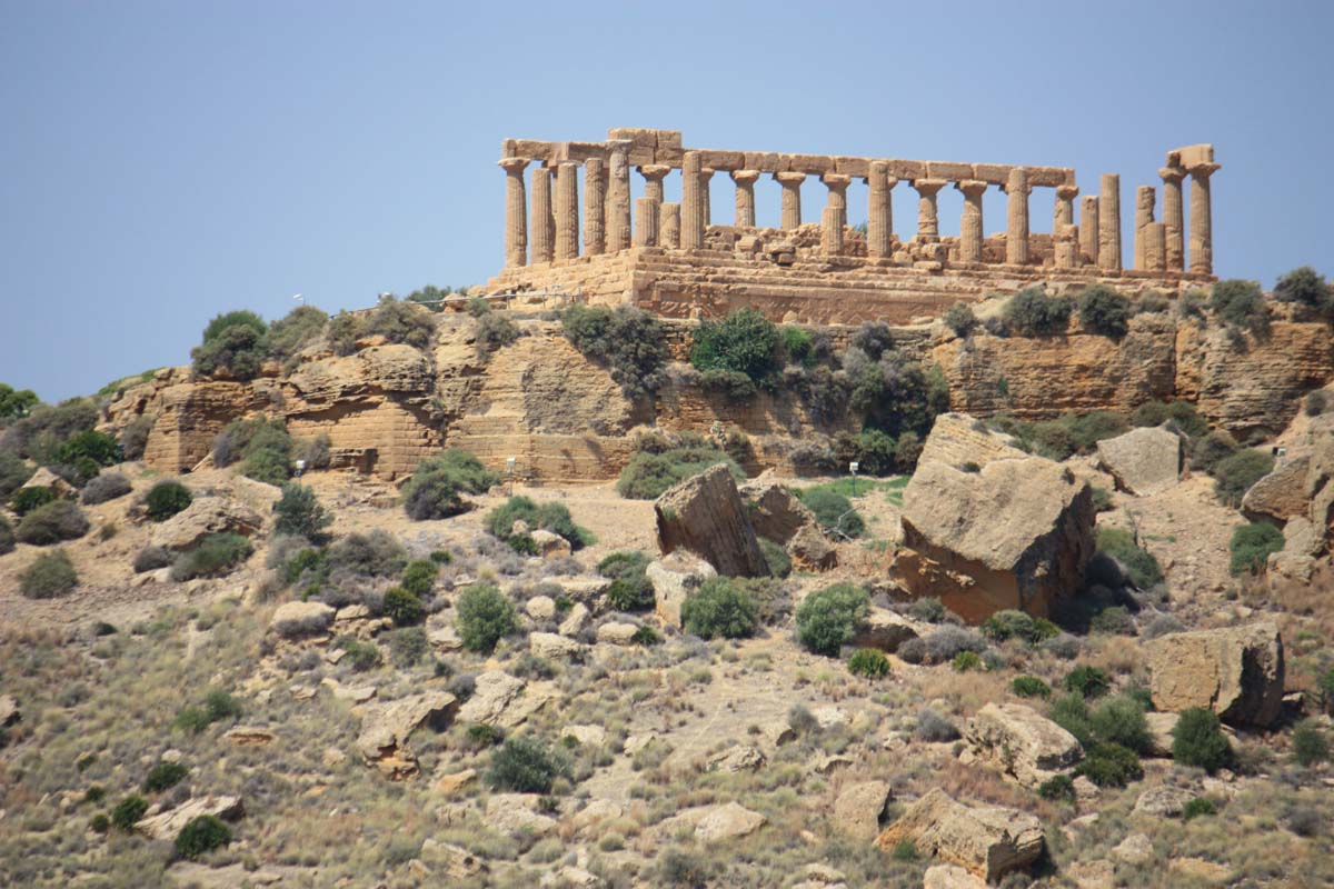 Mi grabimo kroz pustinju prema obali odnosno prema Agrigentu. Agrigento, jedno od popularnih Sicilijanskih turističkih odredišta, poznato je po dolini hramova (Valle dei Templi) koja je bila središte jednog od najvažnijih gradova starog svijeta i veličanstvenosti velike Grčke. Ovi hramovi i danas ponosno stoje iako su izgrađeni prije 2500 godina. Odakle god prilazili Agrigentu ovi divovi prvo su što se pogledom obuhvaća. Smješteni su na brežuljcima pored mora i nude nezaboravan prizor. Sam Agrigento razvio se iznad akropole Antičkog grada. Mi se spuštamo na obalu gdje nalazimo klimatizirani bungalov s kupatilom i Tv-om. Nakon što smo se smjestili jurimo prema plaži. Napokon! Temperatura vode je 29 – 30 C, dakle u more se ulazi kao u kadu punu tople vode. Plaža je pješčana kao i većina s južne strane otoka.